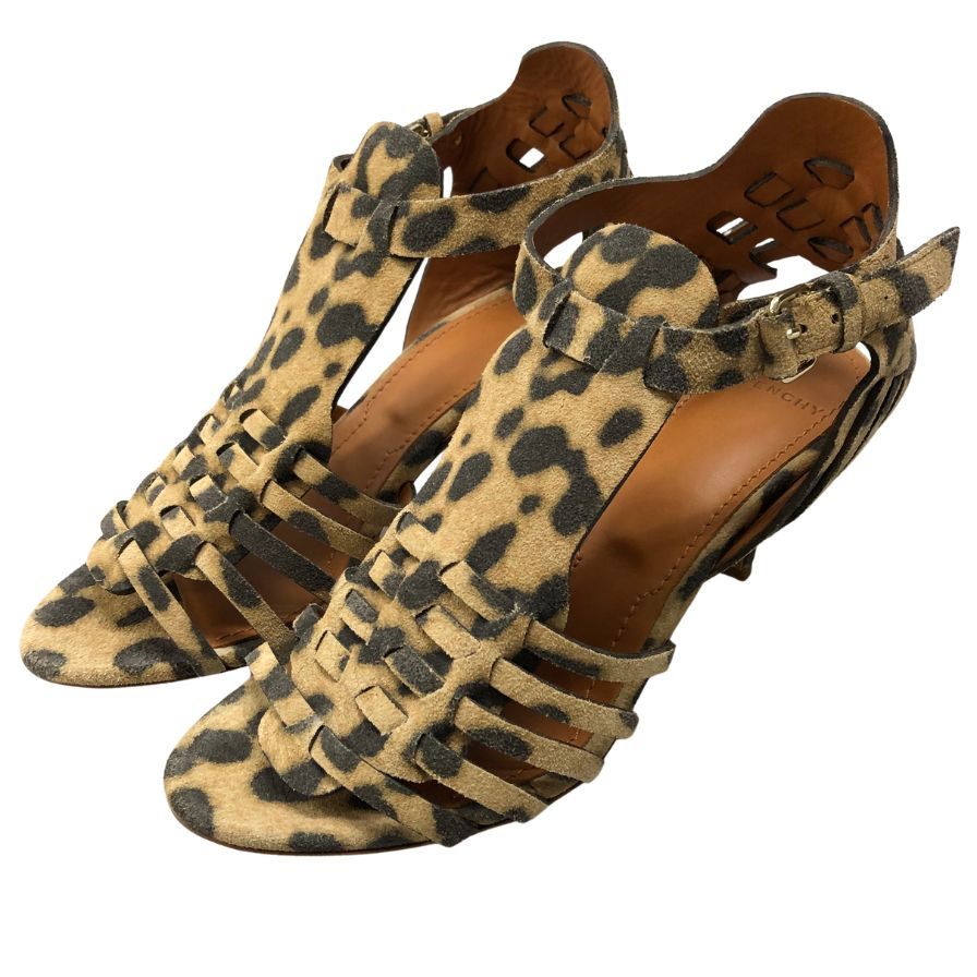 ジバンシー ヒールサンダル オープントゥ スエード ハラコ レディース サイズ37 GIVENCHY 約24.0cm【AFD4】
