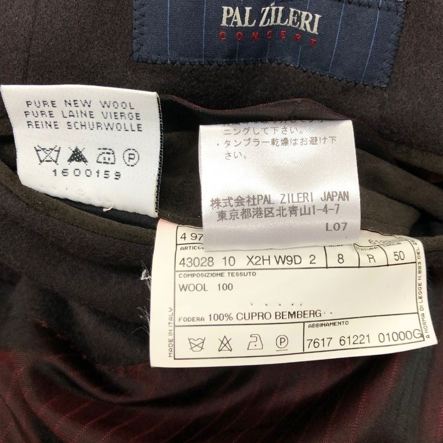 美品◆パルジレリ ダブルブレスト ジャケット ウール100% メンズ サイズ50 ブラウン PAL ZILERI 【AFB6】