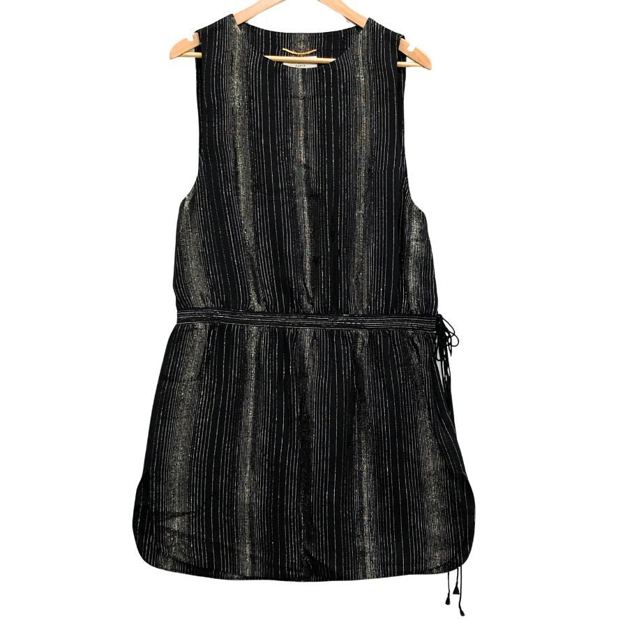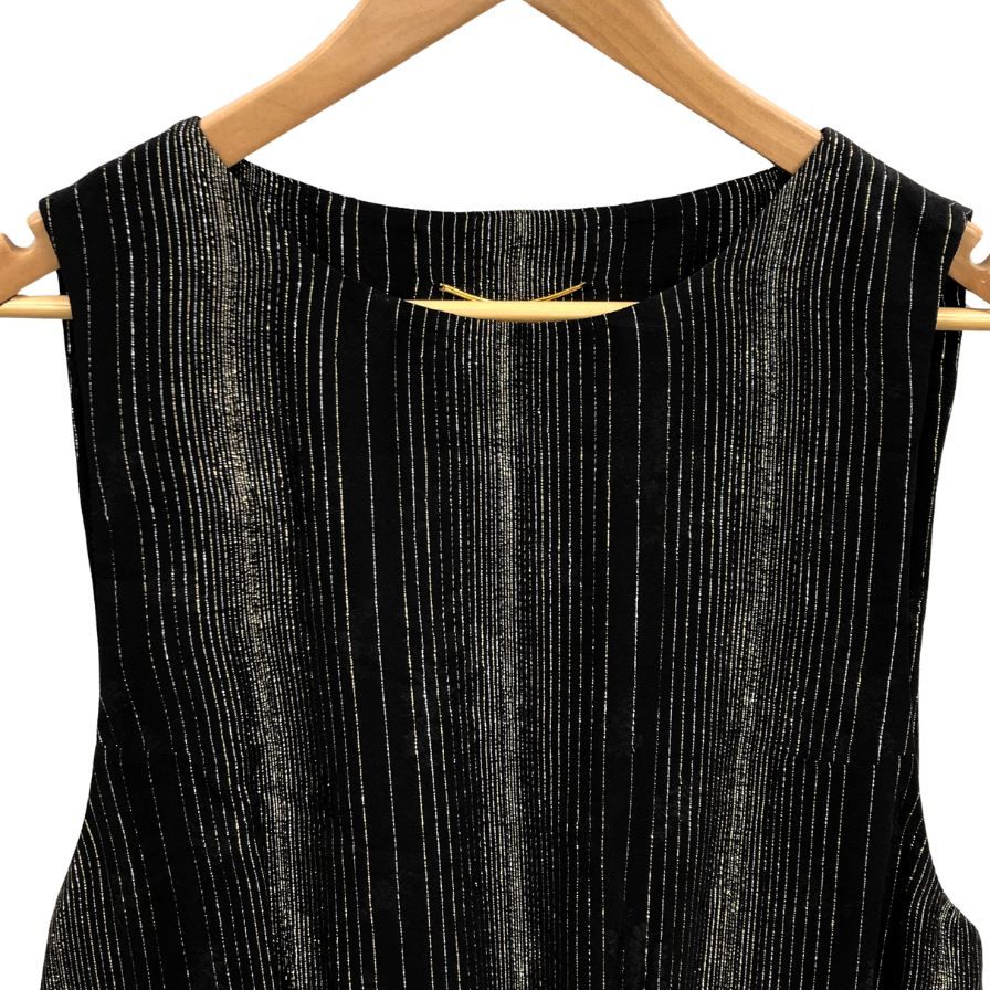 仕様 | 光の角度によって現れる花の織りが入った、ゴールド&シルバーストライプのワンピース。 左側サイドホック・サイドジッパー |