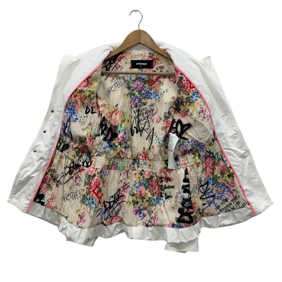 中古◆ディースクエアード ジャケット 裏地 花柄 総柄 S75BN0810 S41794 コットン ホワイト メンズ サイズ46 DSQUARED2 【AFA2】