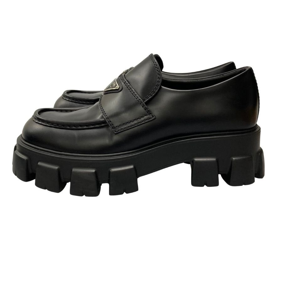 新品同様◆プラダ レザーローファー モノリス トライアングルロゴ 2DE129 メンズ サイズ8 黒 PRADA 約26.5cm【AFD14】
