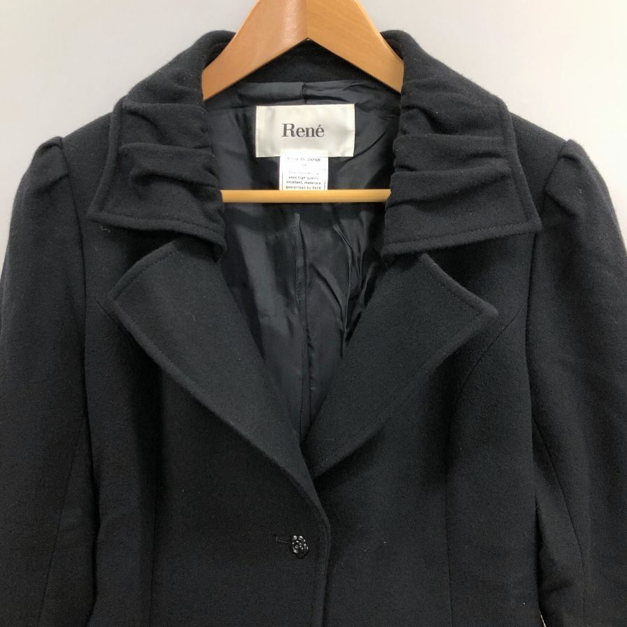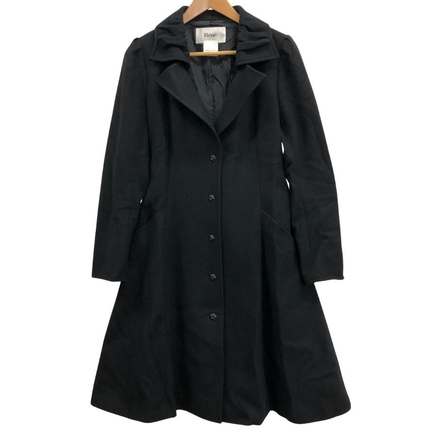 極美品◆ルネ カメリアボタン ウールコート ブラック レディース 36 Rene 【AFA24】