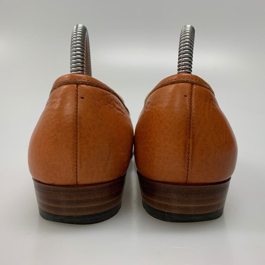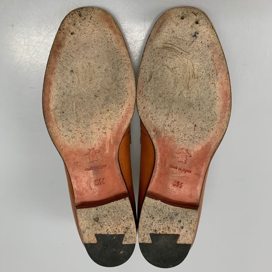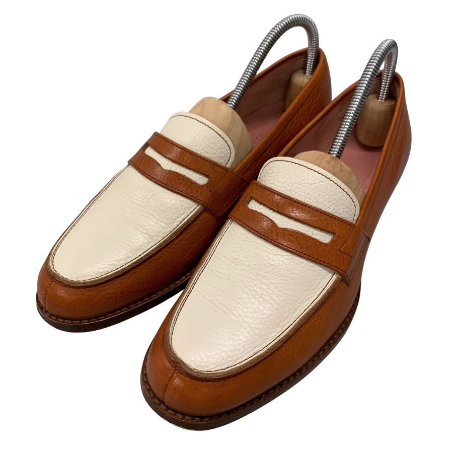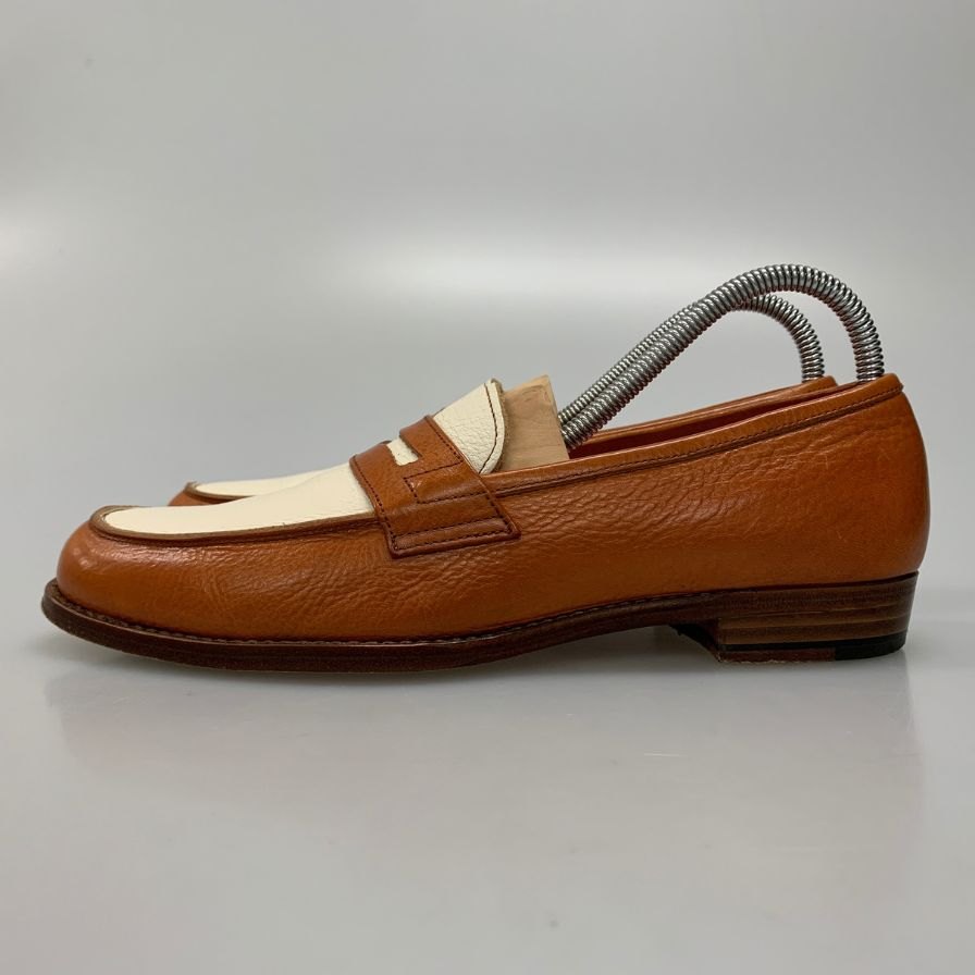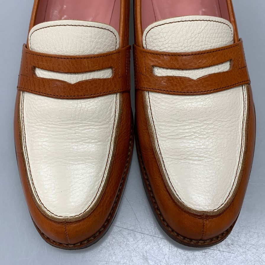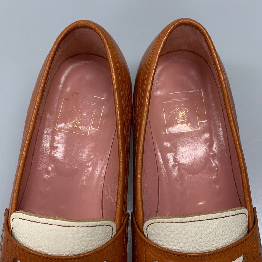 三陽山長 コインローファー カーフ ブラウン×ホワイト サイズ5ハーフ レディース 日本製 約24.5cm【AFD9】