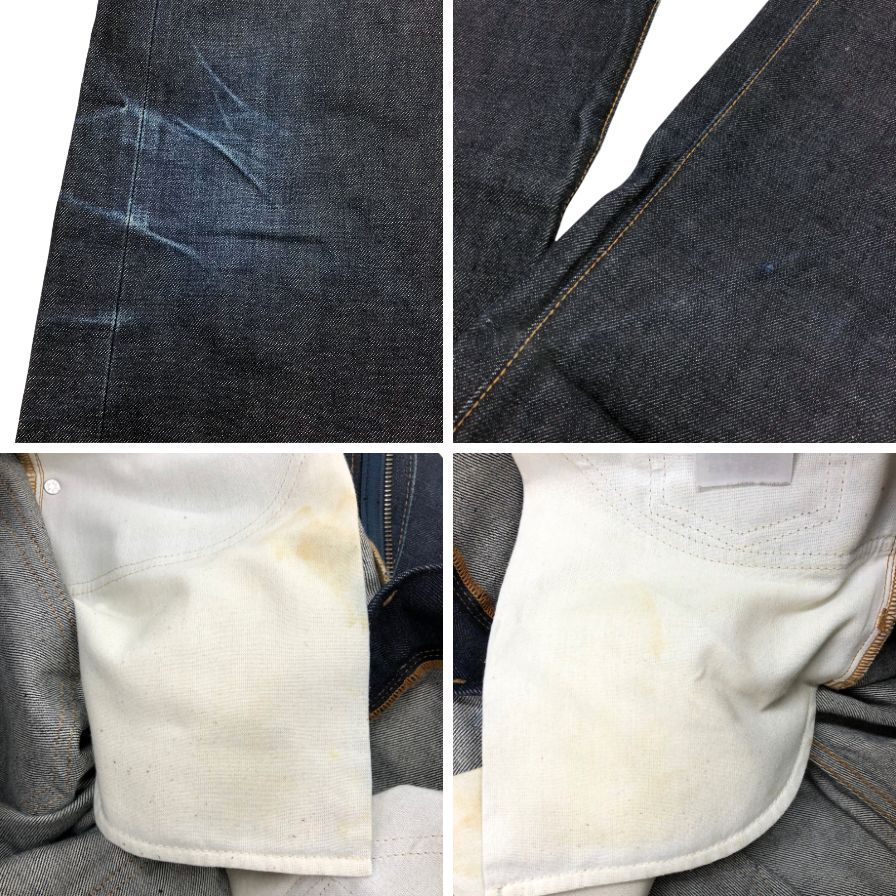 梱包サイズ | スレ多数、汚れ、裾折り目、内側黄ばみ・毛羽立ち、膝色落ち・ダメージ、若干型崩れが見られます。サイズ |