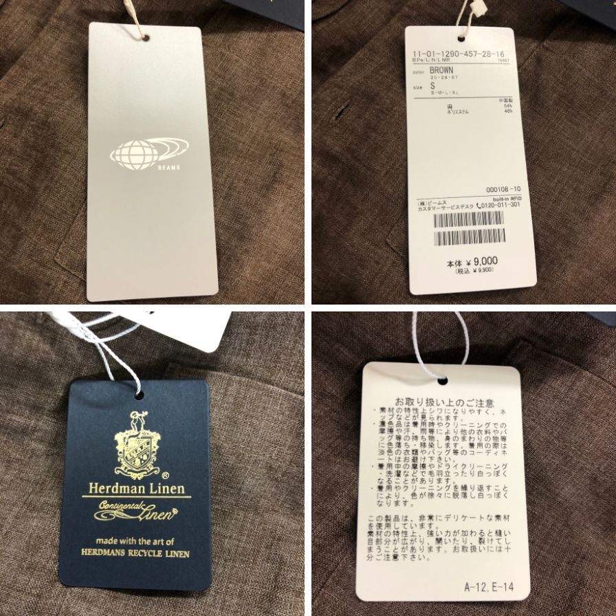 極美品◆ビームス 半袖リネンシャツ ブラウン系 Sサイズ 11-01-1290-457-28-16 BEAMS 【AFB42】