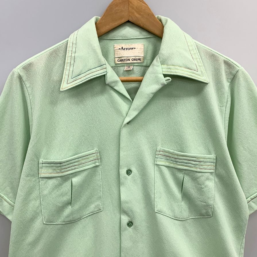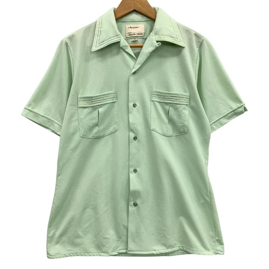 美品◆アロー 開襟シャツ グリーン メンズ サイズM ARROW 【AFB32】