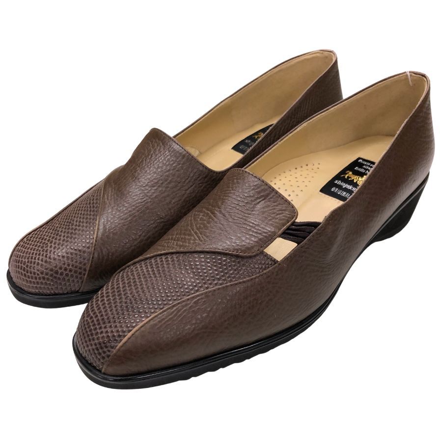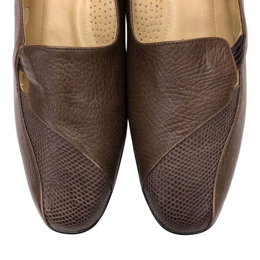 新宿屋 レザーパンプス マットトカゲ 3330-635 24.5cm レディース ブラウン shinjukuya 約24.5cm【7-19】