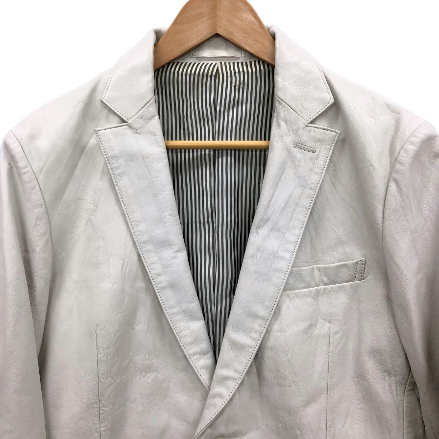 新品同様◆5351 プールオム テーラードジャケット レザー やぎ革 ホワイト メンズ サイズ44 5351 Pour Les Hommes 【AFB7】