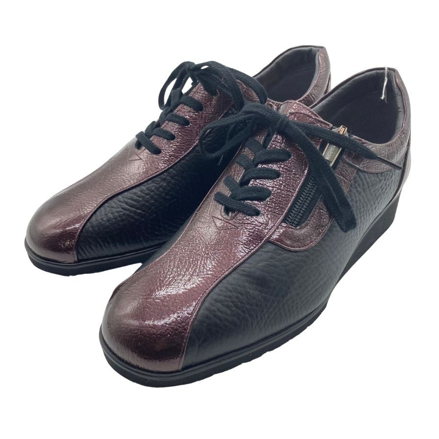 ジュンジュンバイ新宿屋 スニーカー 2210 レザー パープル ブラック レディース サイズ23.5 Jun.Jun by shinjukuya 約23.5cm【7-9】