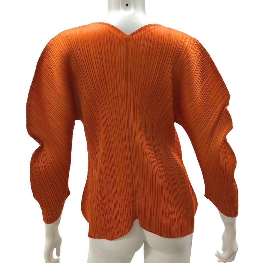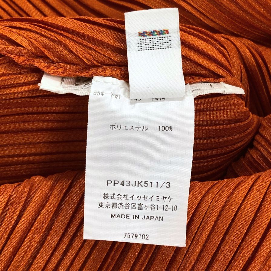 極美品◆イッセイミヤケ プリーツプリーズ ワームホール 長袖シャツ PP43JK511 オレンジ サイズ3 ISSEY MIYAKE PLEATS PLEASE 【AFB45】