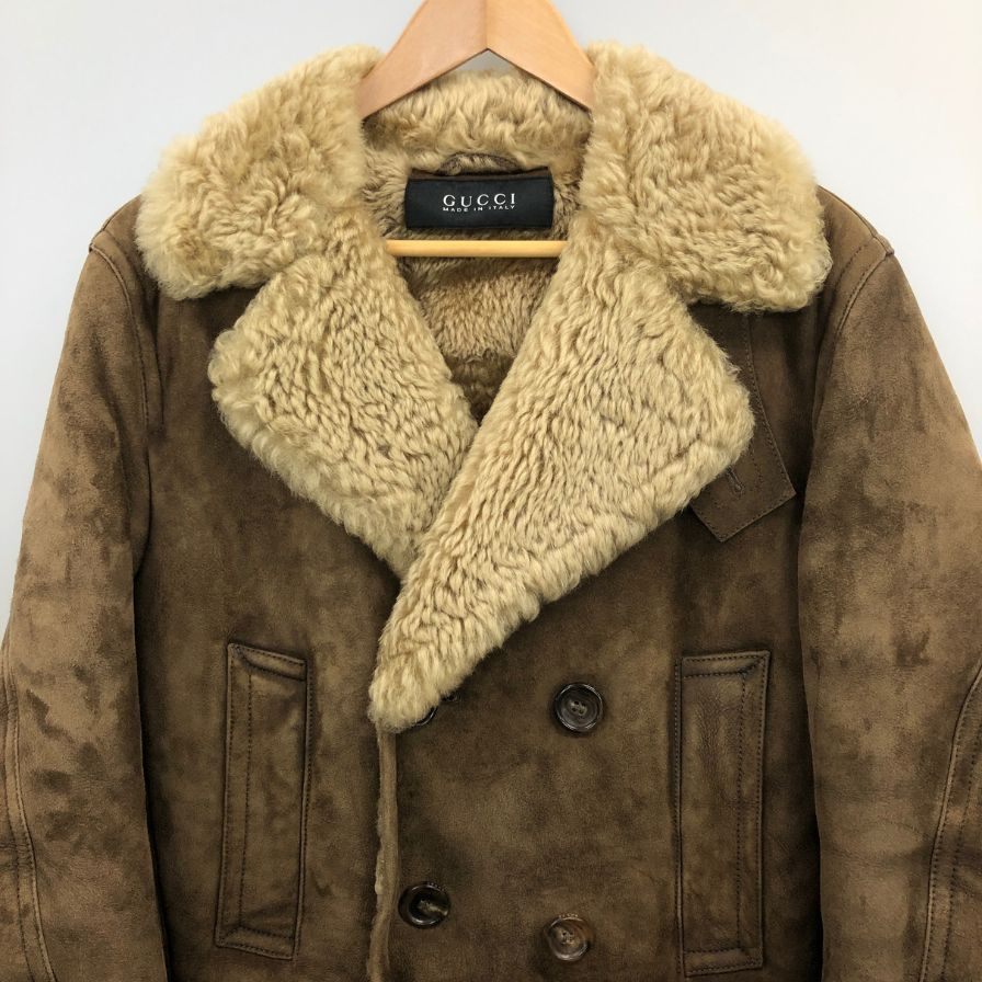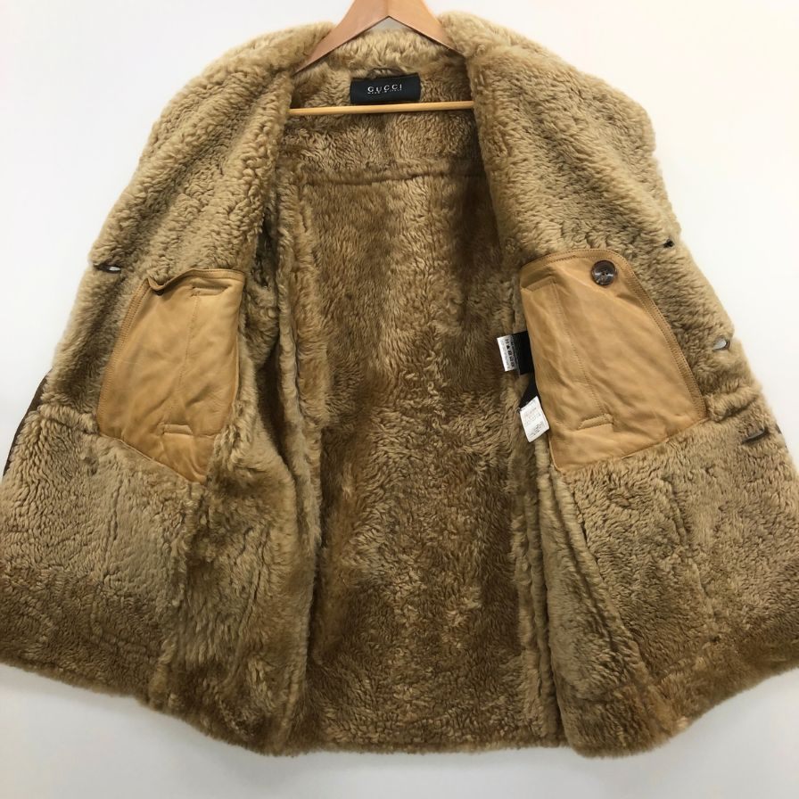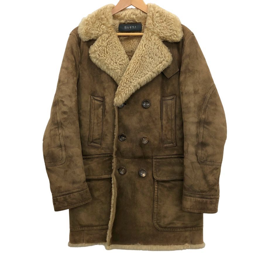 美品◆グッチ ムートンコート 11AW 羊毛皮 スウェード ボア ロング丈 ベージュ メンズ サイズ44 GUCCI 【AFB52】