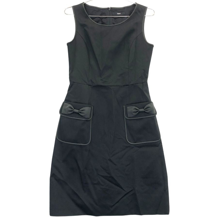 美品◆ルネ ワンピース ノースリーブ ポリエステル リボン デザイン ブラック レディース サイズ38 Rene 【AFB35】