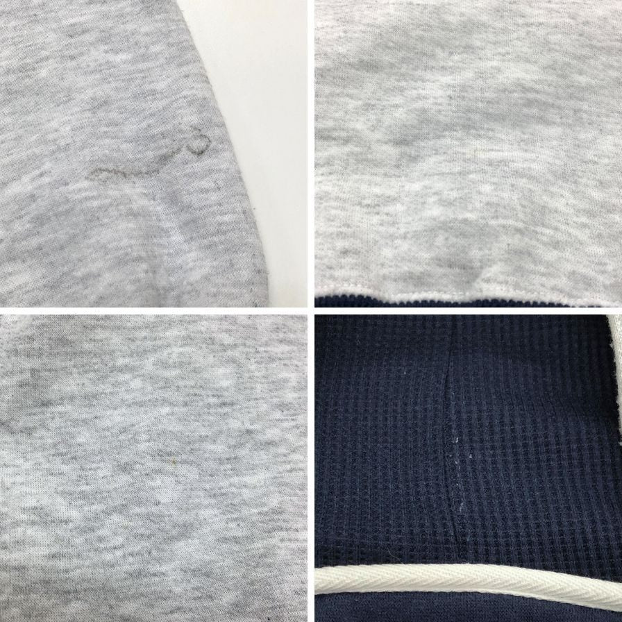 全体毛羽立ち、袖・前見頃汚れが見られます。 |