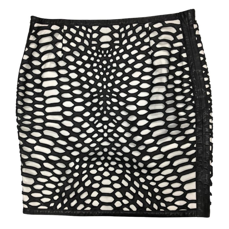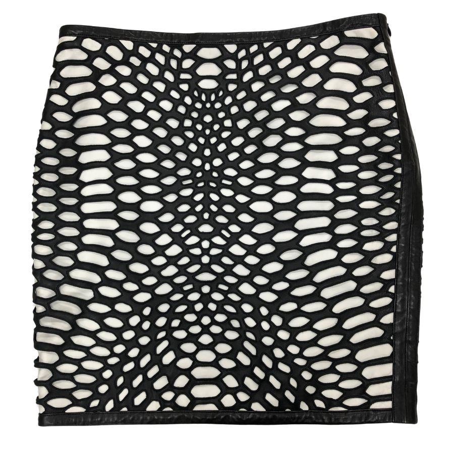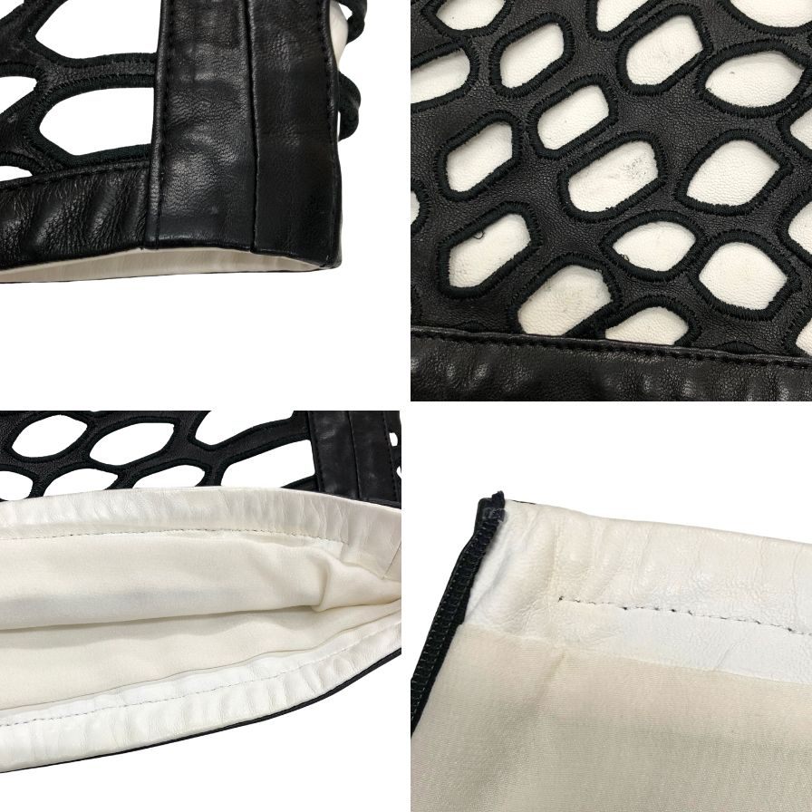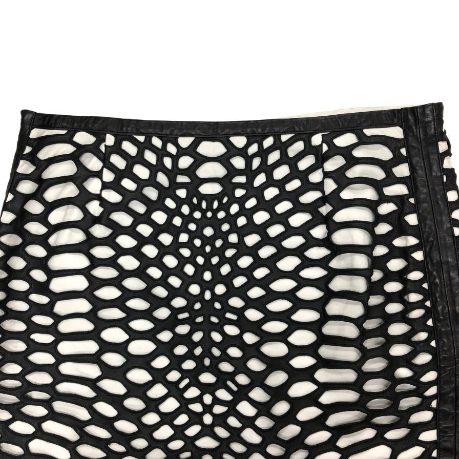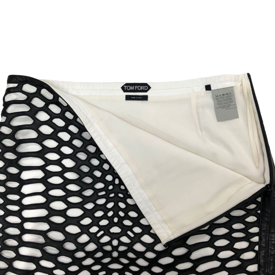 トムフォード レザースカート レディース ラムレザー サイズ44 ブラック×ホワイト TOM FORD【AFB29】