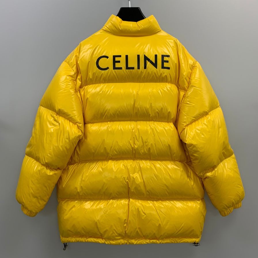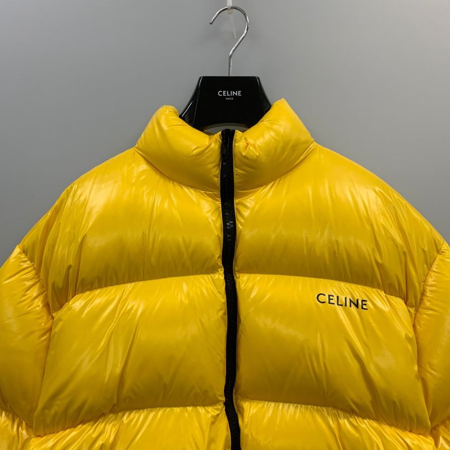 新品同様◆セリーヌ バイ エディスリマン ロゴプリント ダウンジャケット 2W738595K イエロー サイズ46 メンズ CELINE 【AFF19】