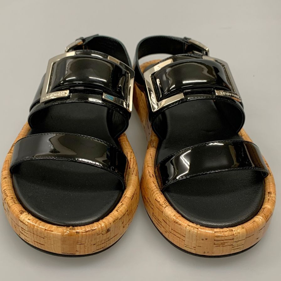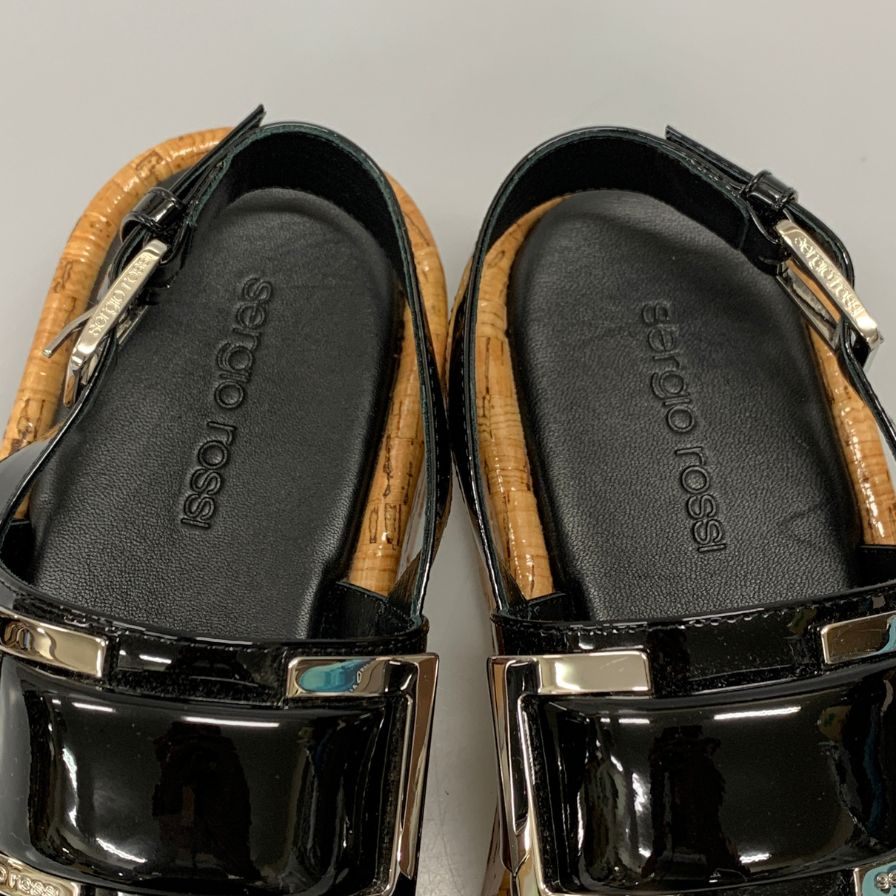 セルジオロッシ フラットサンダル エナメル ブラック レディース サイズ35.5 Sergio Rossi 約22.0cm【AFC4】