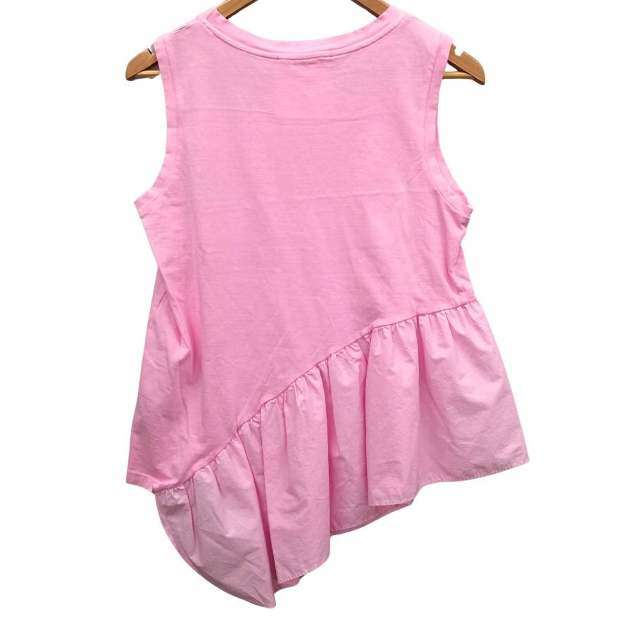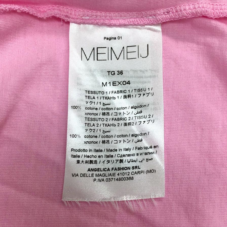 極美品◆メイメイジェイ ノースリーブ フリル トップス レディース コットン100% サイズ36 ピンク イタリア製 MEIMEIJ 【AFB28】