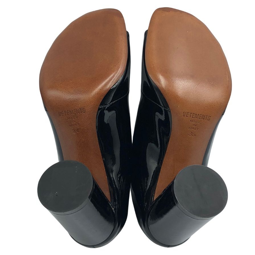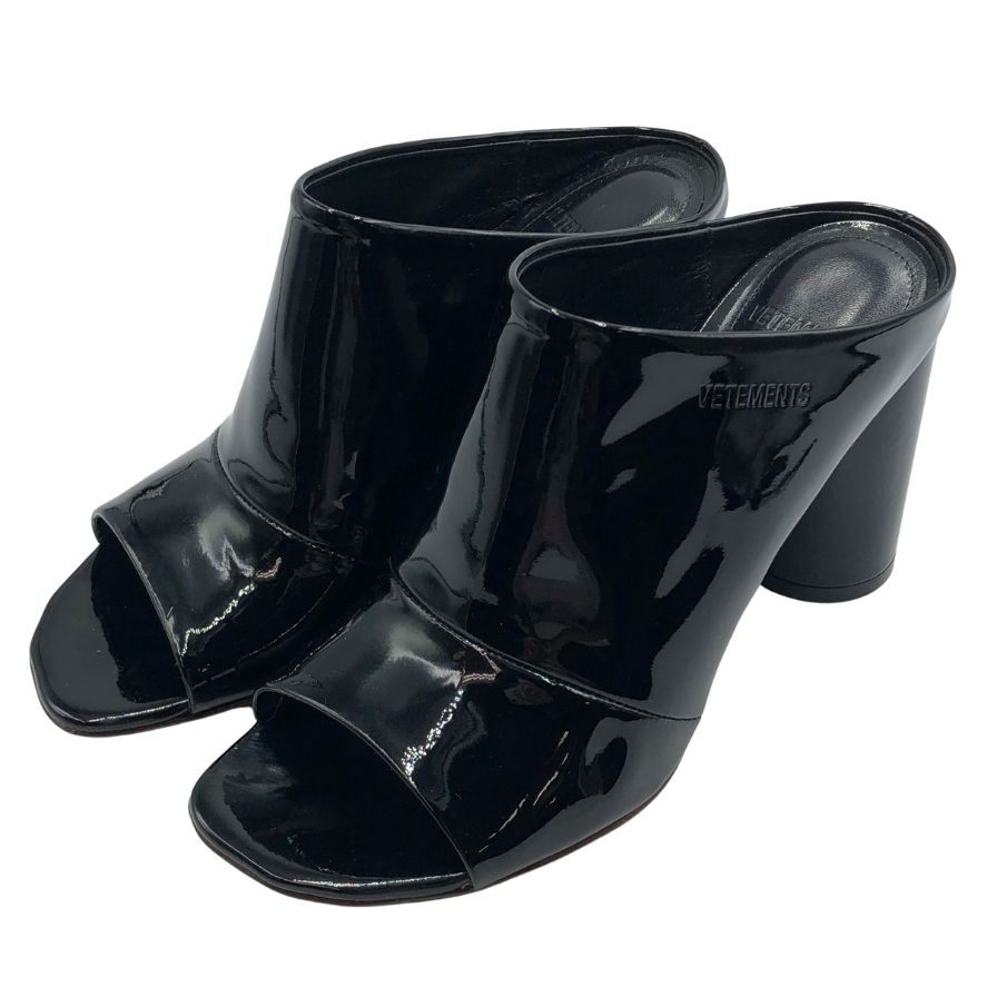 ヴェトモン エナメル ラウンドヒール ミュール サンダル レディース サイズ36 ブラック VETEMENTS 約22.5cm【AFC31】