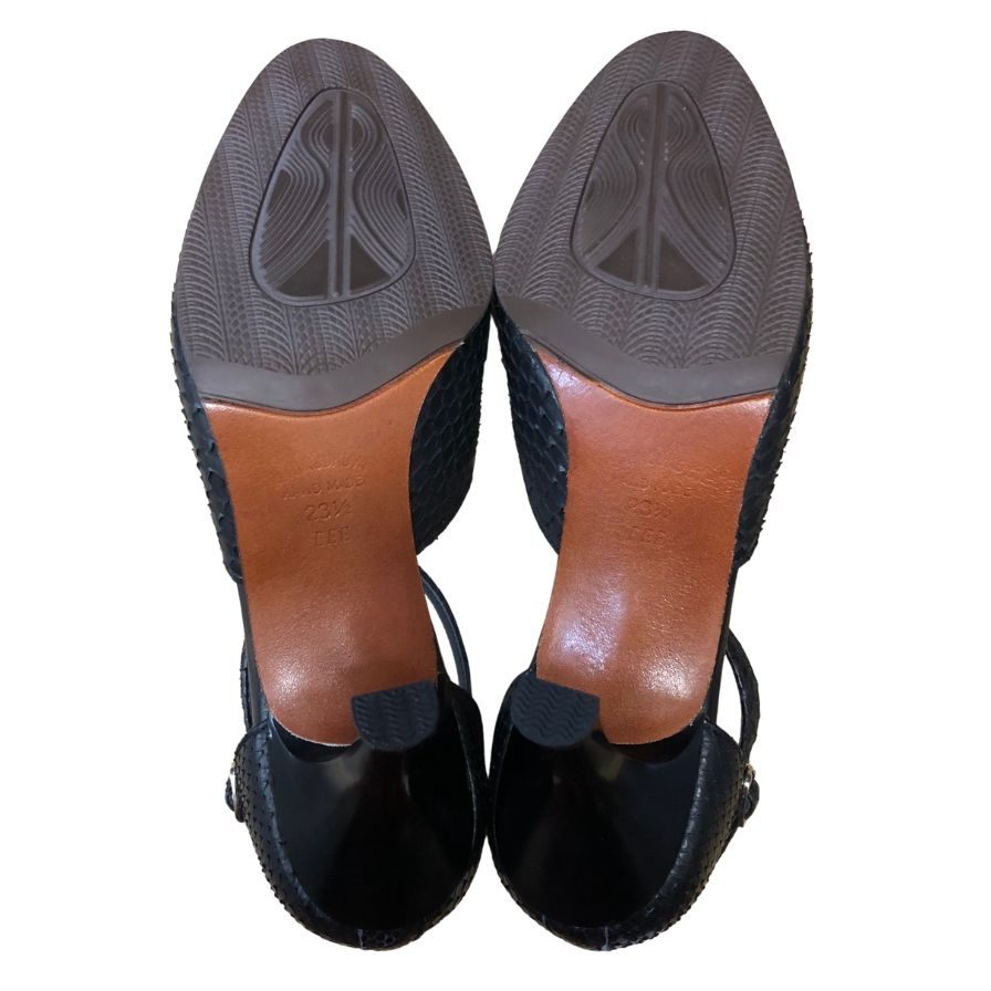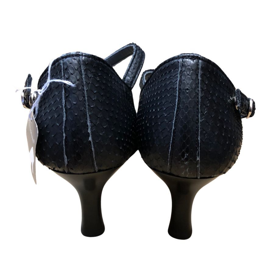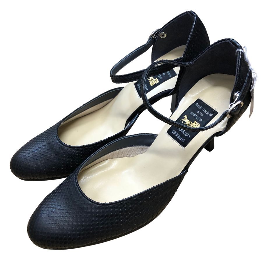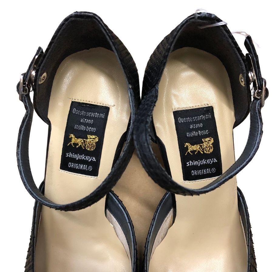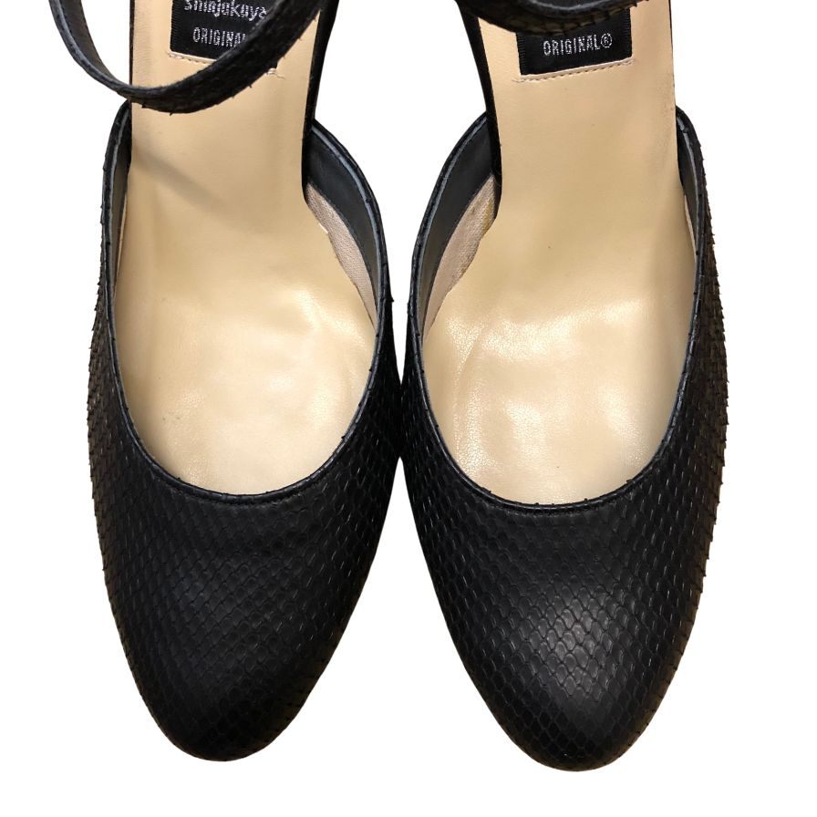 新宿屋 レザーパンプス パイソン 7105-155 23.5cm ブラック レディース【7F3-3】
