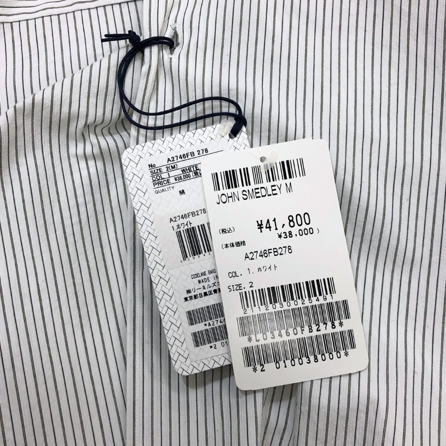 ブランド | ジョンスメドレー シャツ ノーカラー バンドカラー 長袖 ストライプ メンズ ホワイト系 サイズM JOHN SMEDLEY |