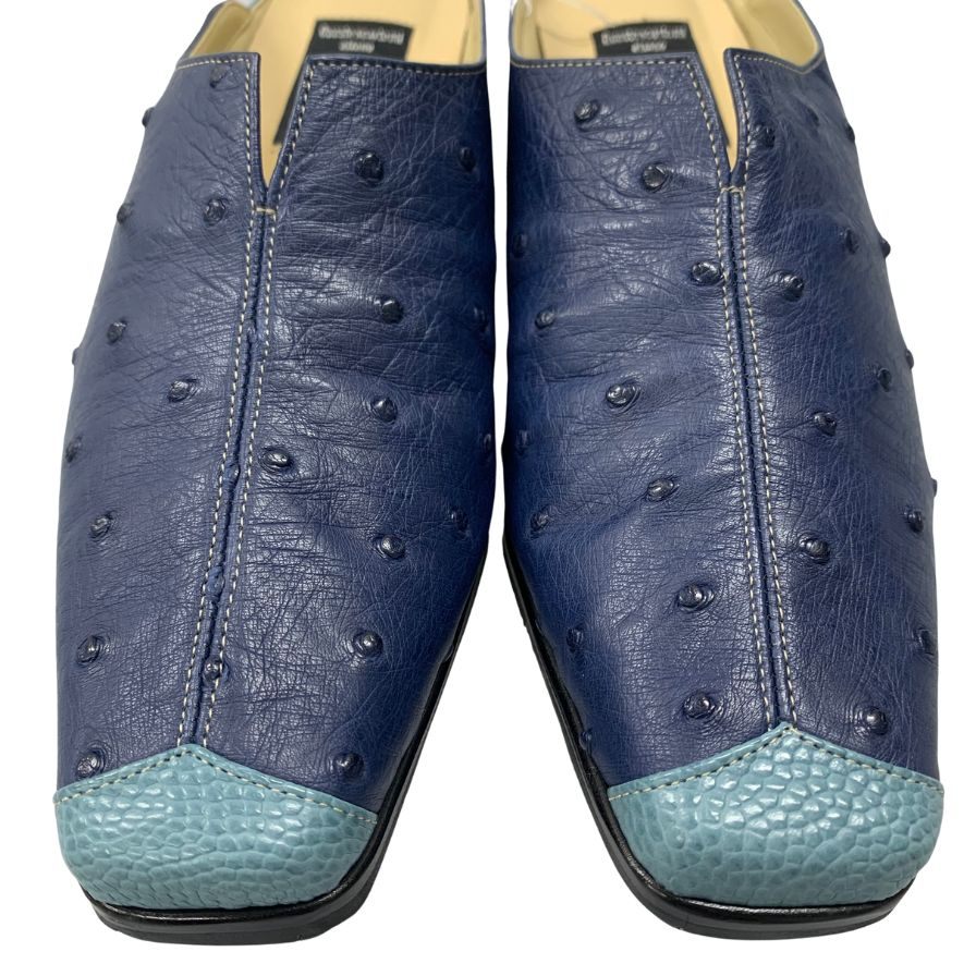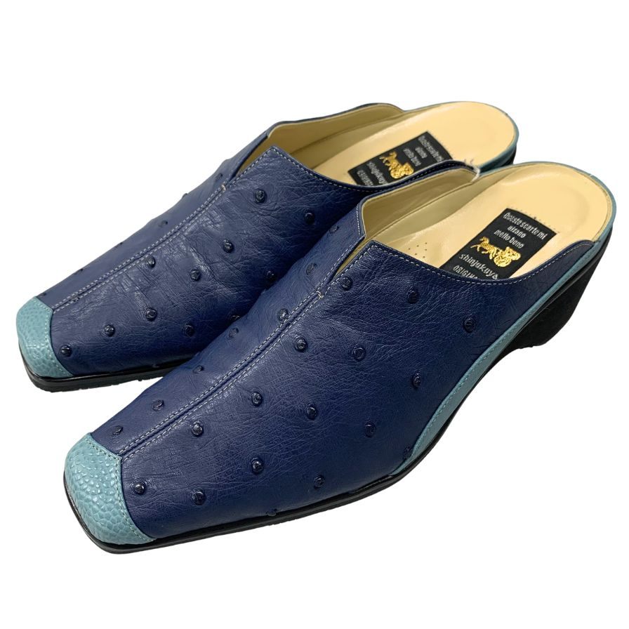 新宿屋 レザーパンプス オーストリッチ 4910-085 アイリスブルー 23cm レディース shinjukuya 約23.0cm【7-19】