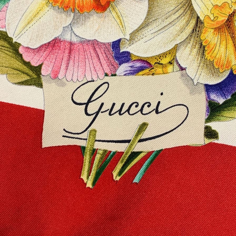 グッチ 大判スカーフ ストール 花柄 レッド GUCCI【AFI6】