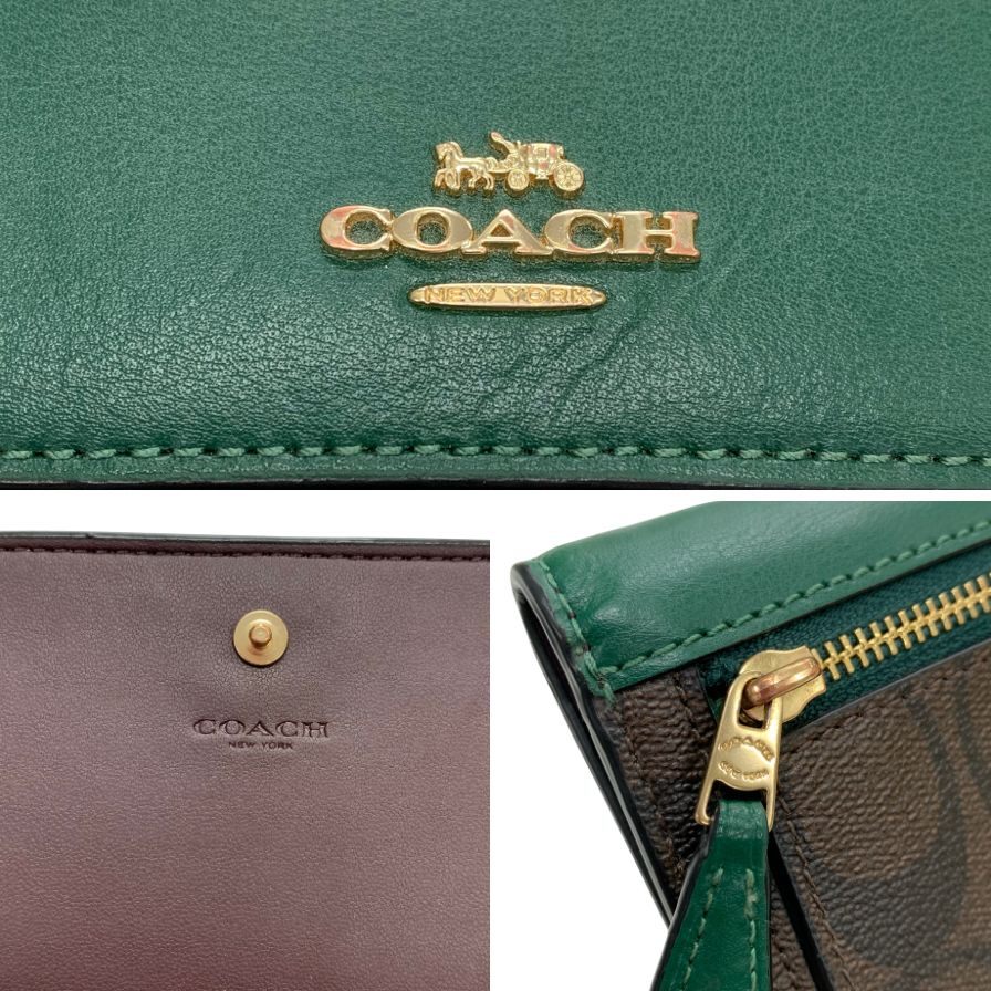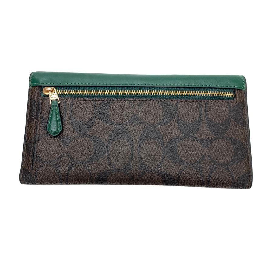 コーチ 長財布 二つ折り シグネクチャー PVC×レザー グリーン メンズ COACH【AFI6】