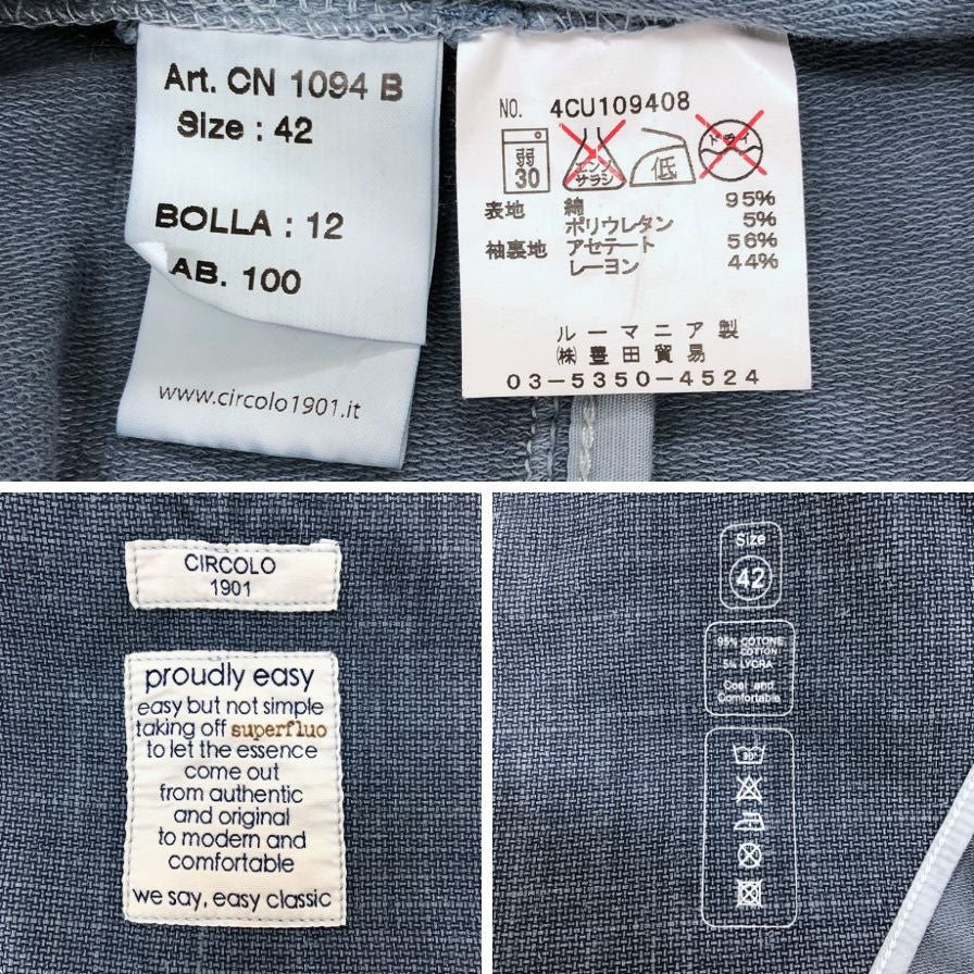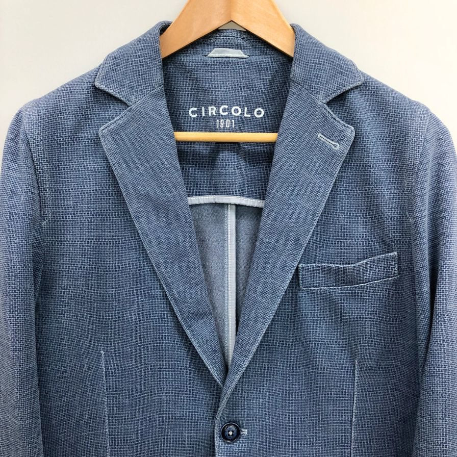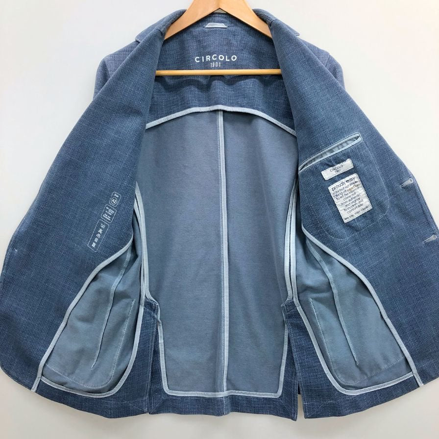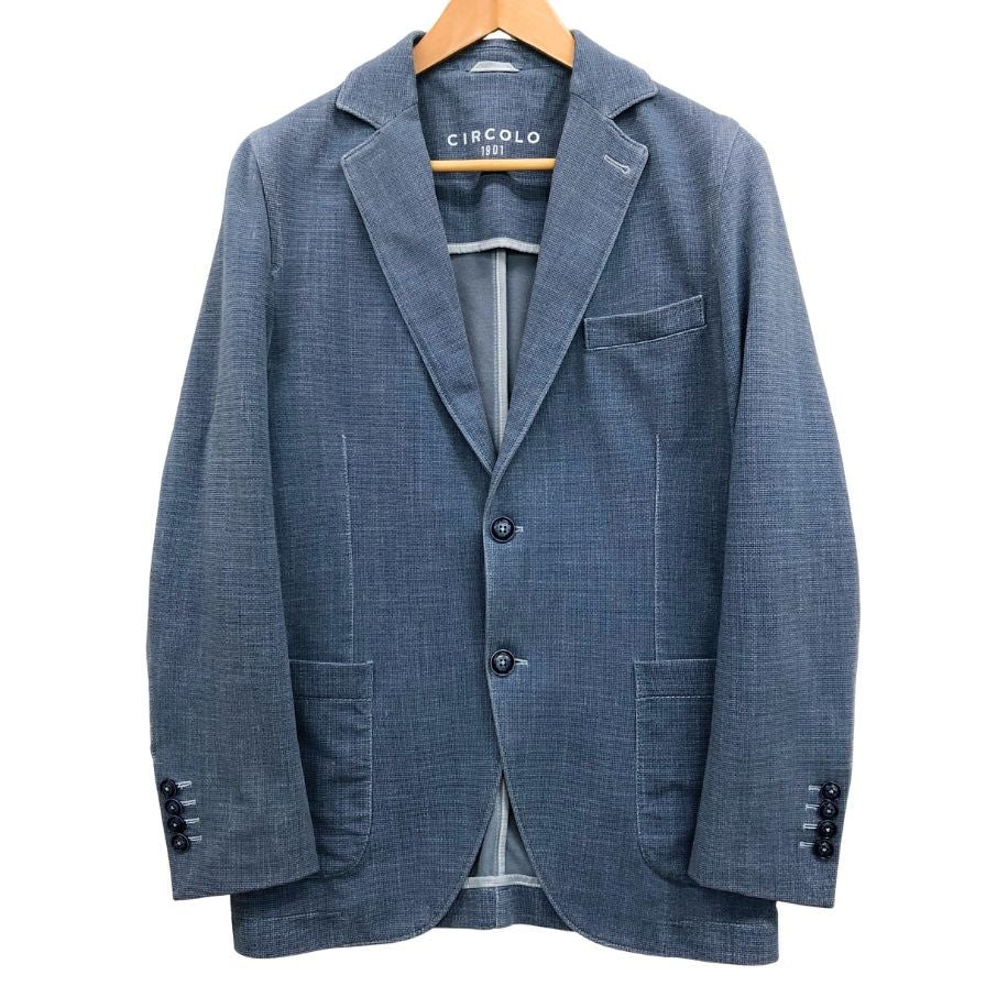 極美品◆チルコロ テーラードジャケット コットン ストレッチ ジャージ デニム ライト ブルー メンズ サイズ42 CIRCOLO 1901 【AFB38】