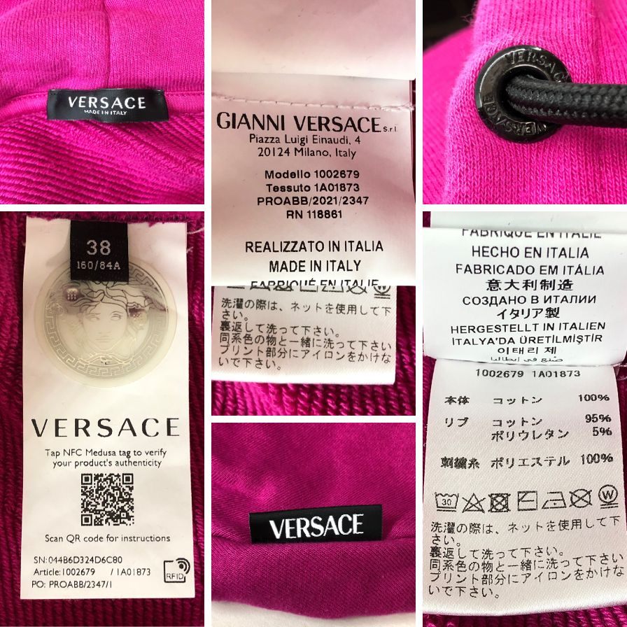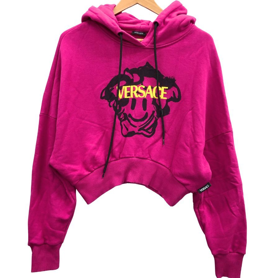 美品◆ヴェルサーチ パーカー スマイルプリント クロップド丈 ピンク レディース サイズ38 VERSACE 【AFB14】