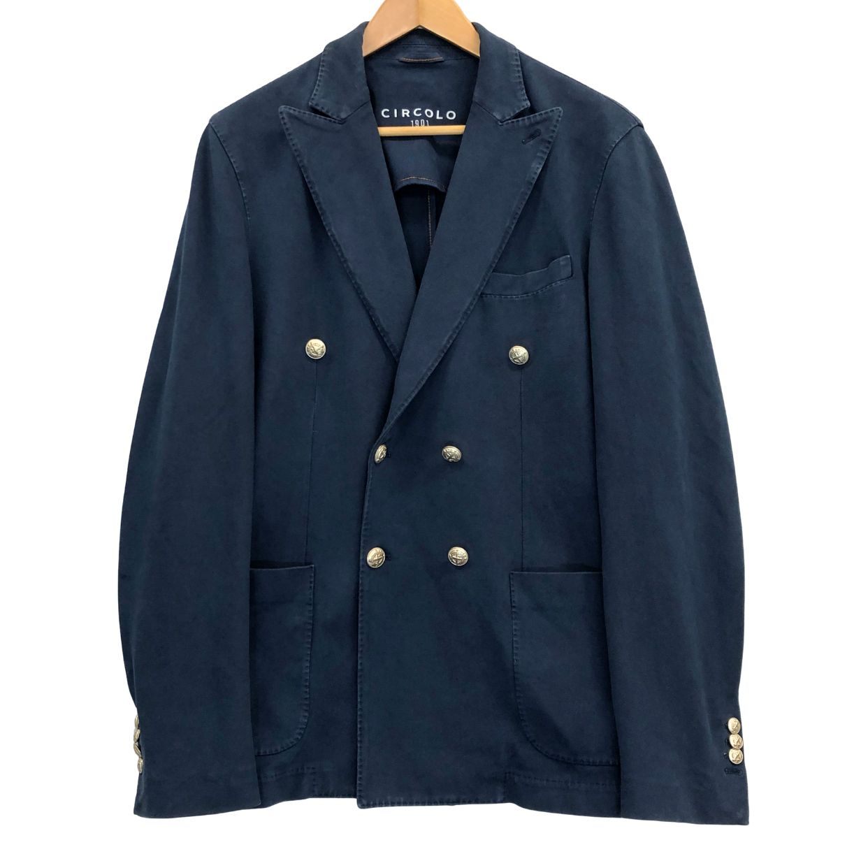 中古◆チルコロ 6Bダブル コットン ジャージー ジャケット ネイビー 50サイズ CIRCOLO 【AFB32】