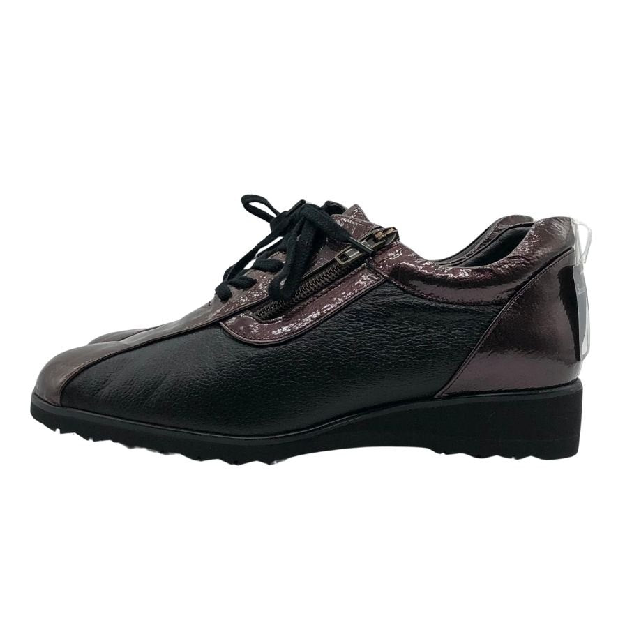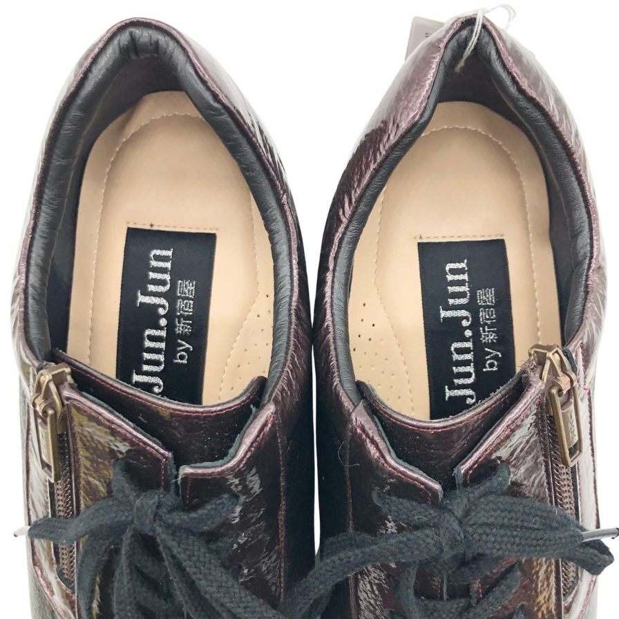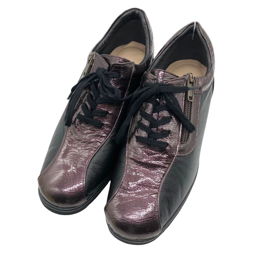 ジュンジュンバイ新宿屋 スニーカー 2210 レザー パープル ブラック ネブラ オデット 切替 レディース サイズ22.5 Jun.Jun by shinjukuya 約22.5cm【7-18】