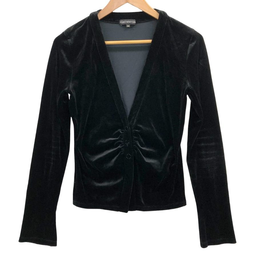 美品◆フォクシー ニューヨーク ベロア風カーディガン ブラック 40サイズ 19842-ARJAY50 FOXEY NEW YORK 【AFB8】