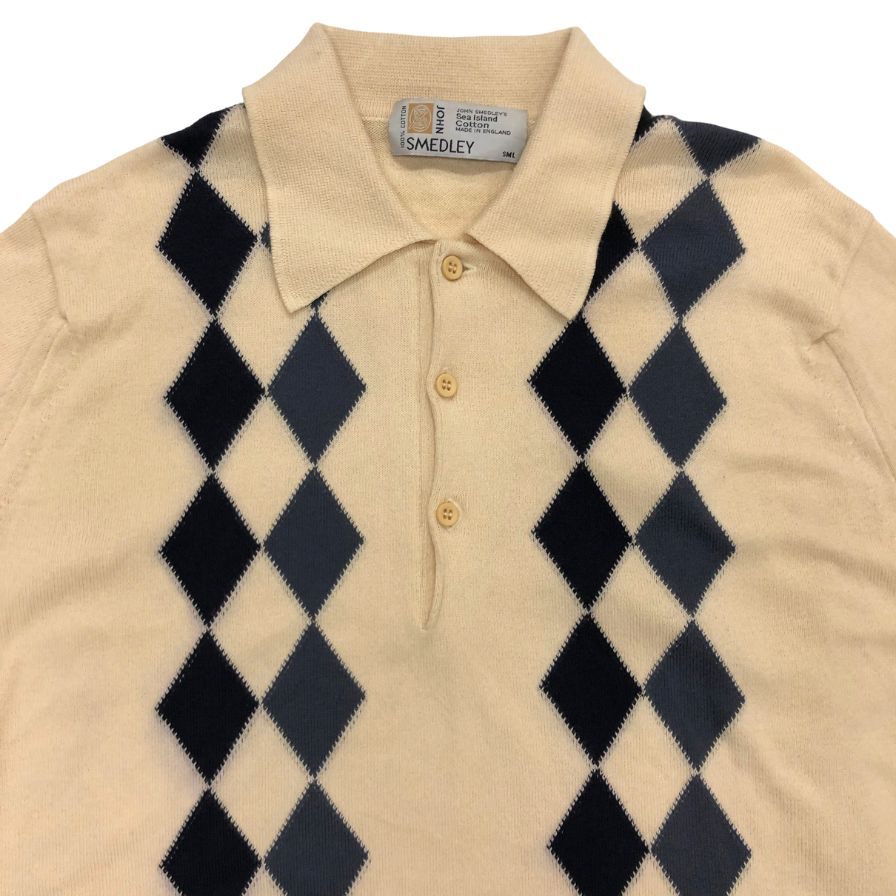 美品◆ジョンスメドレー シーアイランドコットン 半袖ニットポロ アーガイル メンズ サイズS JOHN SMEDLEY 【AFB5】