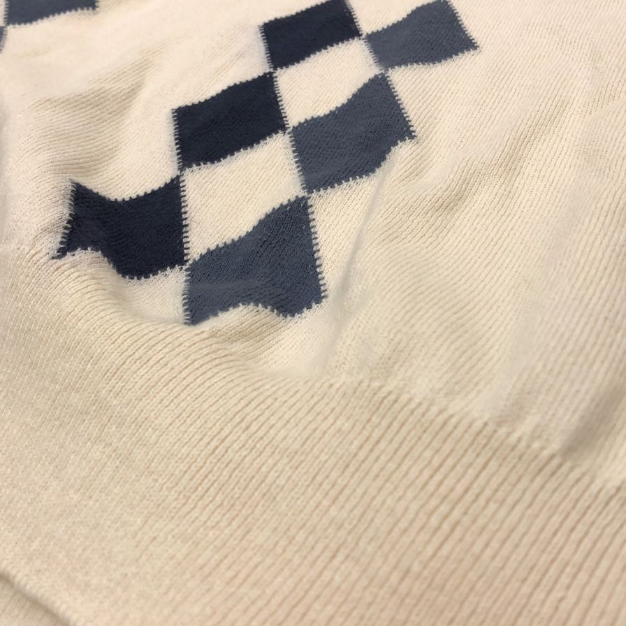 襟に若干の薄汚れ、若干の毛羽立ちが見られます。 |