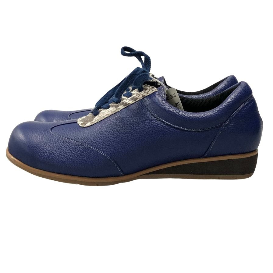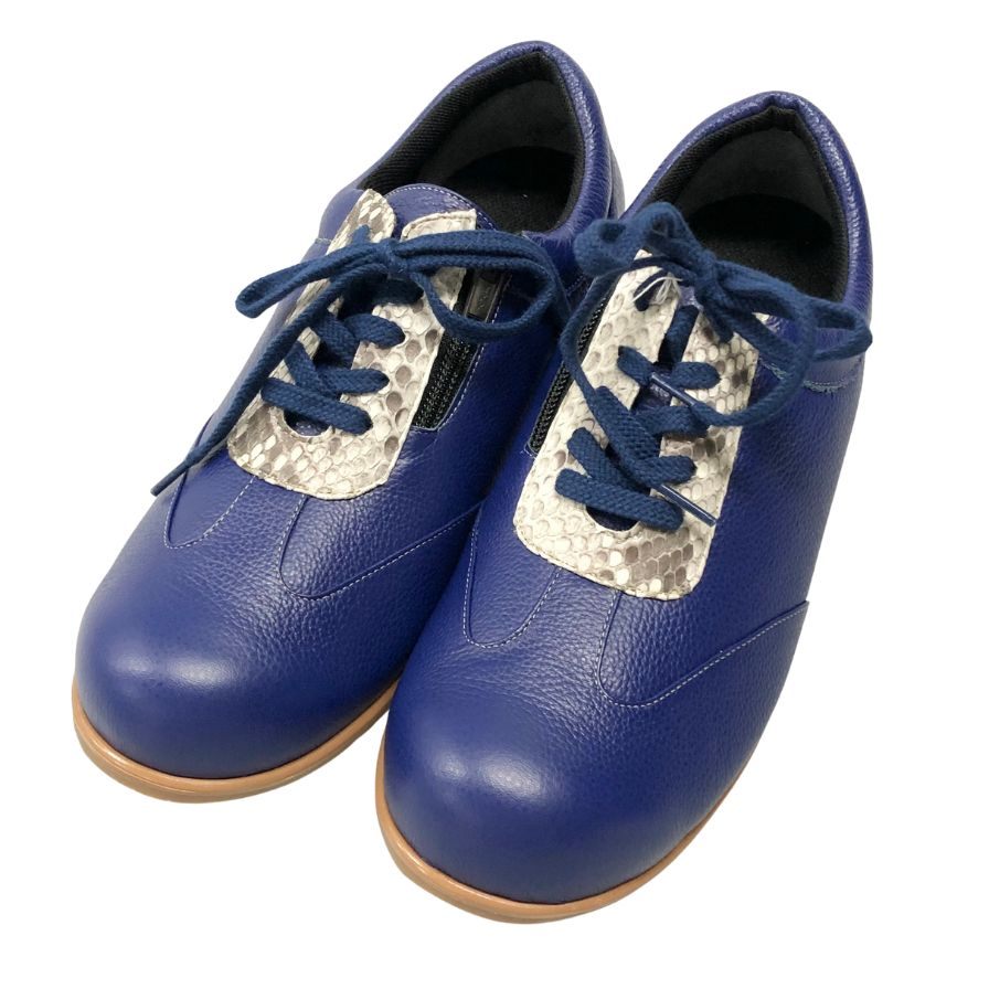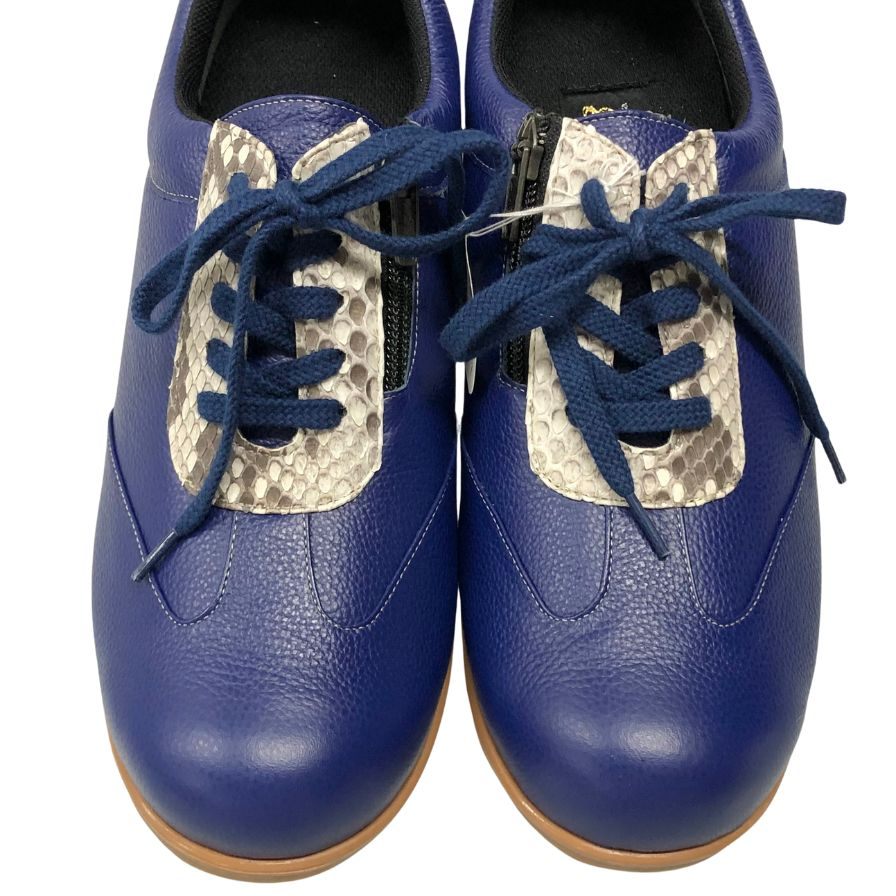 新宿屋 レザースニーカー レザー×パイソン 0250-545 ブルー 24.5cm レディース shinjukuya 約24.5cm【7-5】