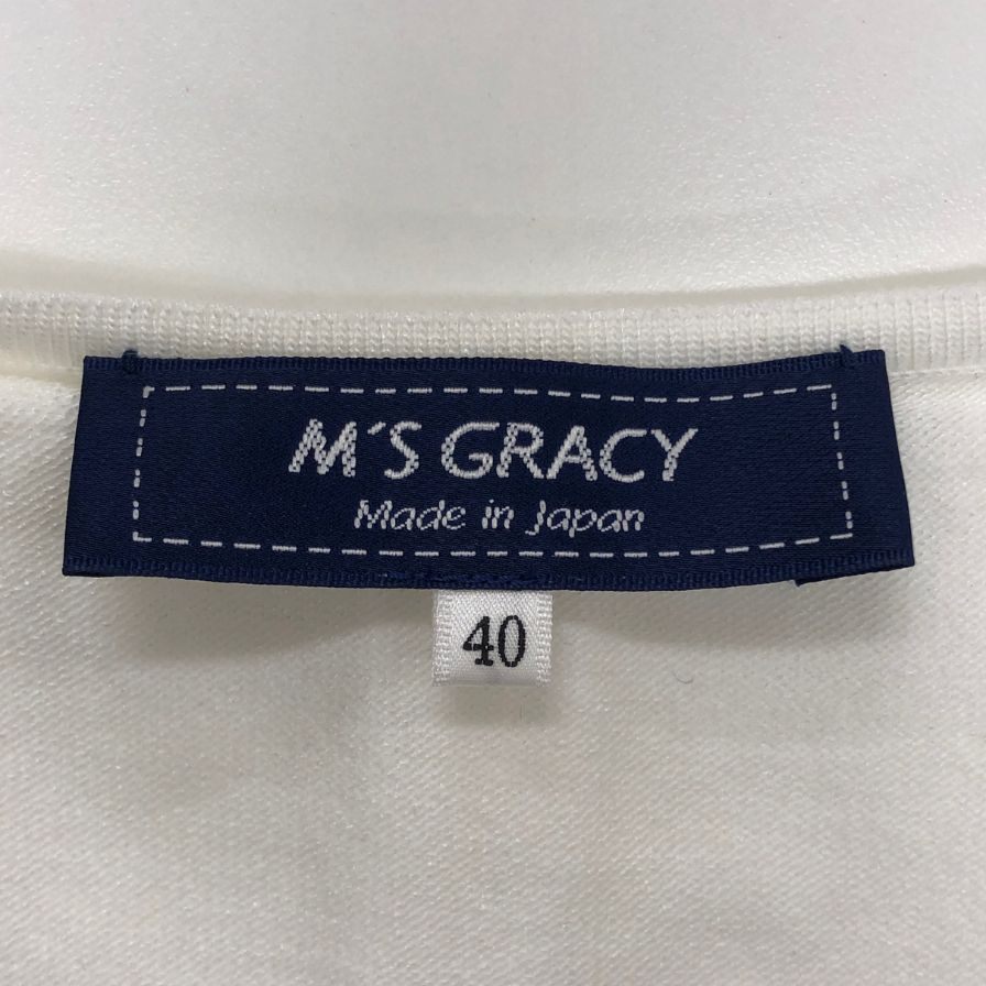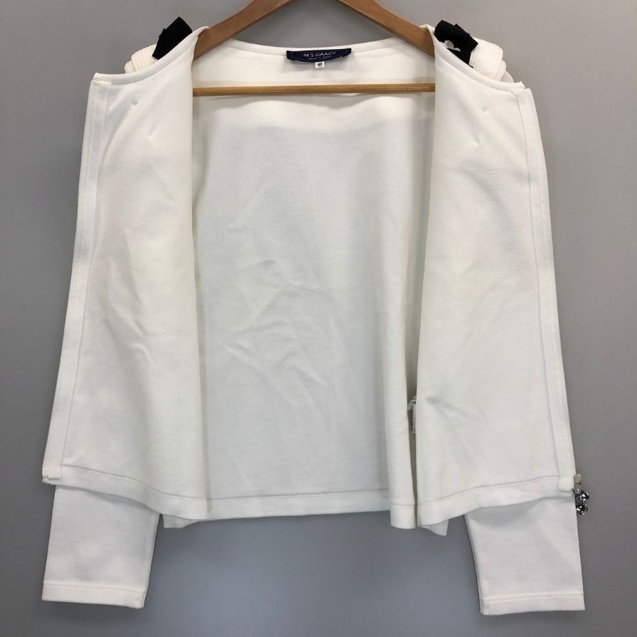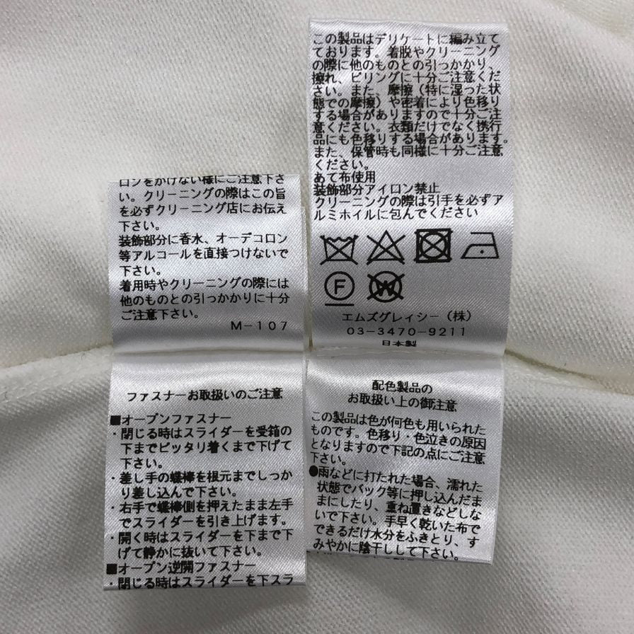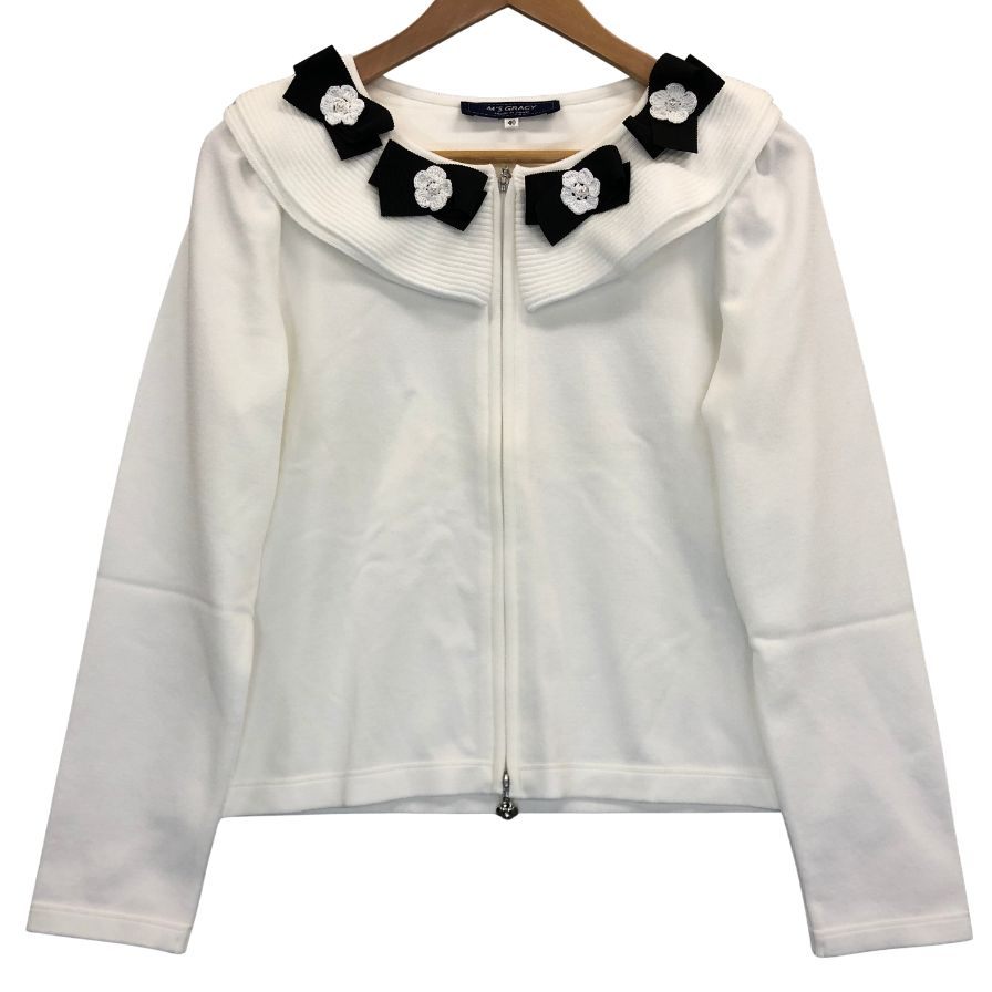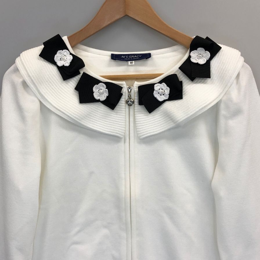 美品◆エムズグレイシー カーディガン フラワー モチーフ 装飾 ジップアップ ニット 218108 ホワイト レディース サイズ40 M'S GRACY 【AFB11】