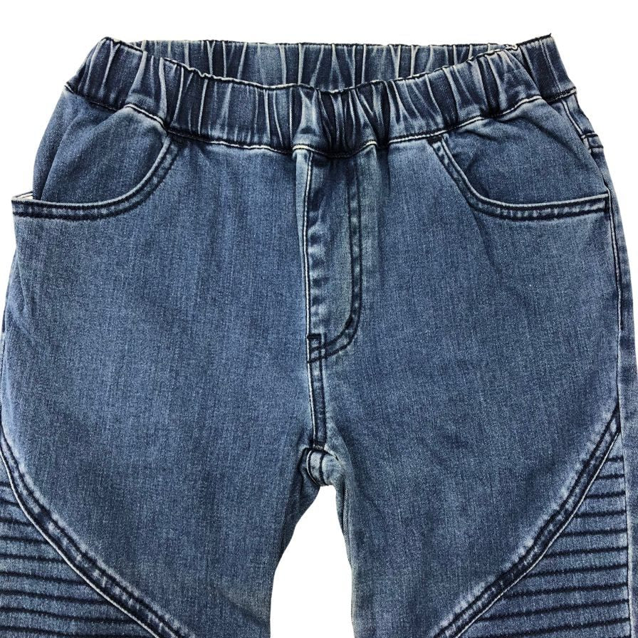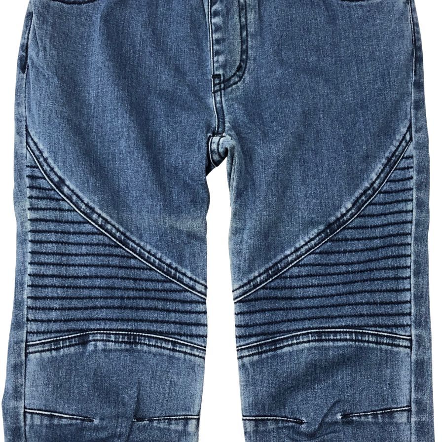 フロント・太腿・スネ辺りシワに沿って変色が見られます。 |