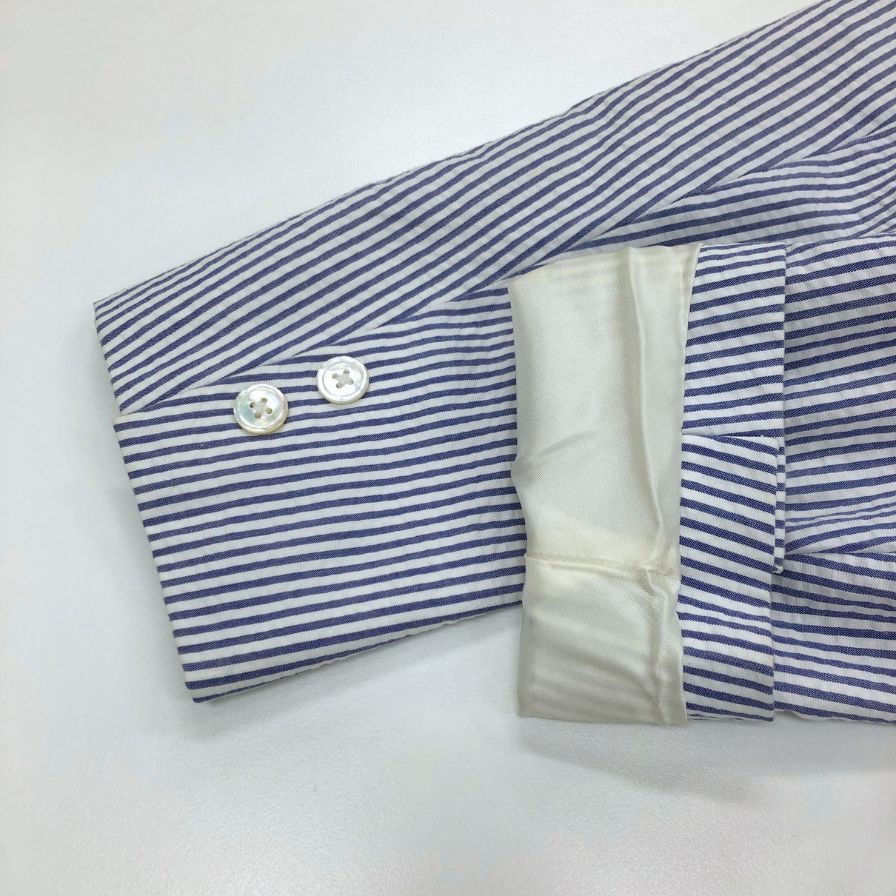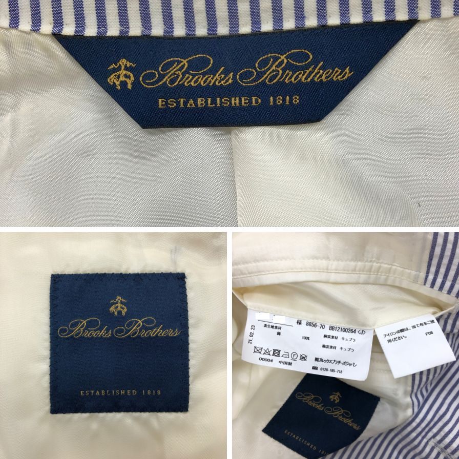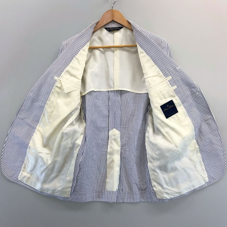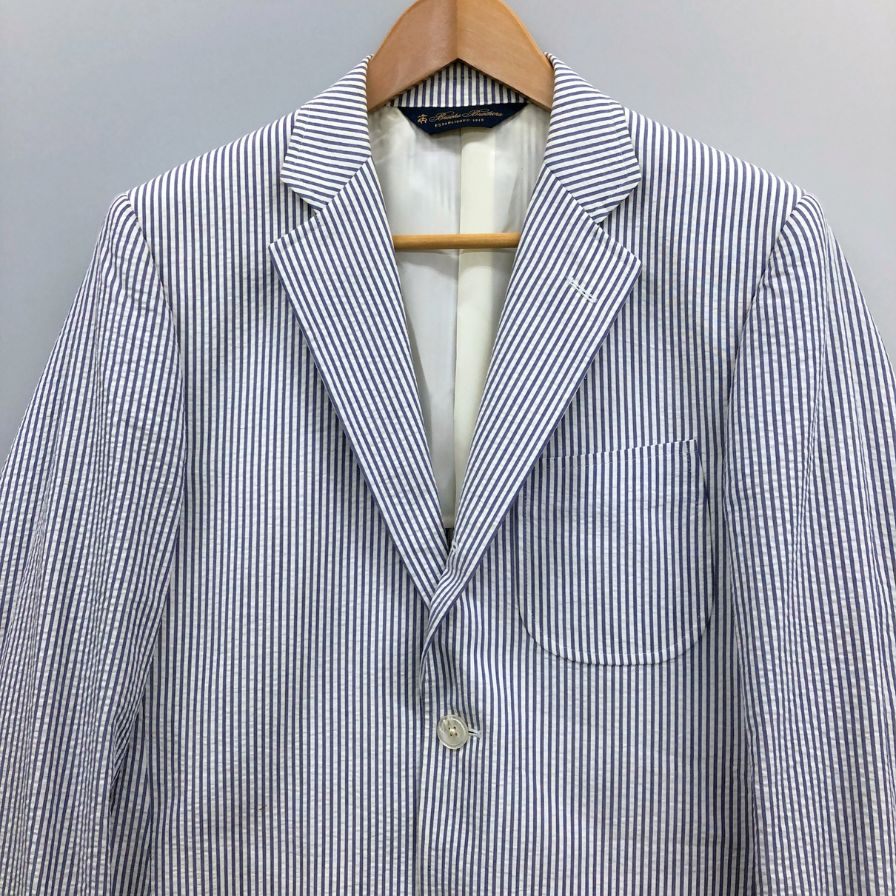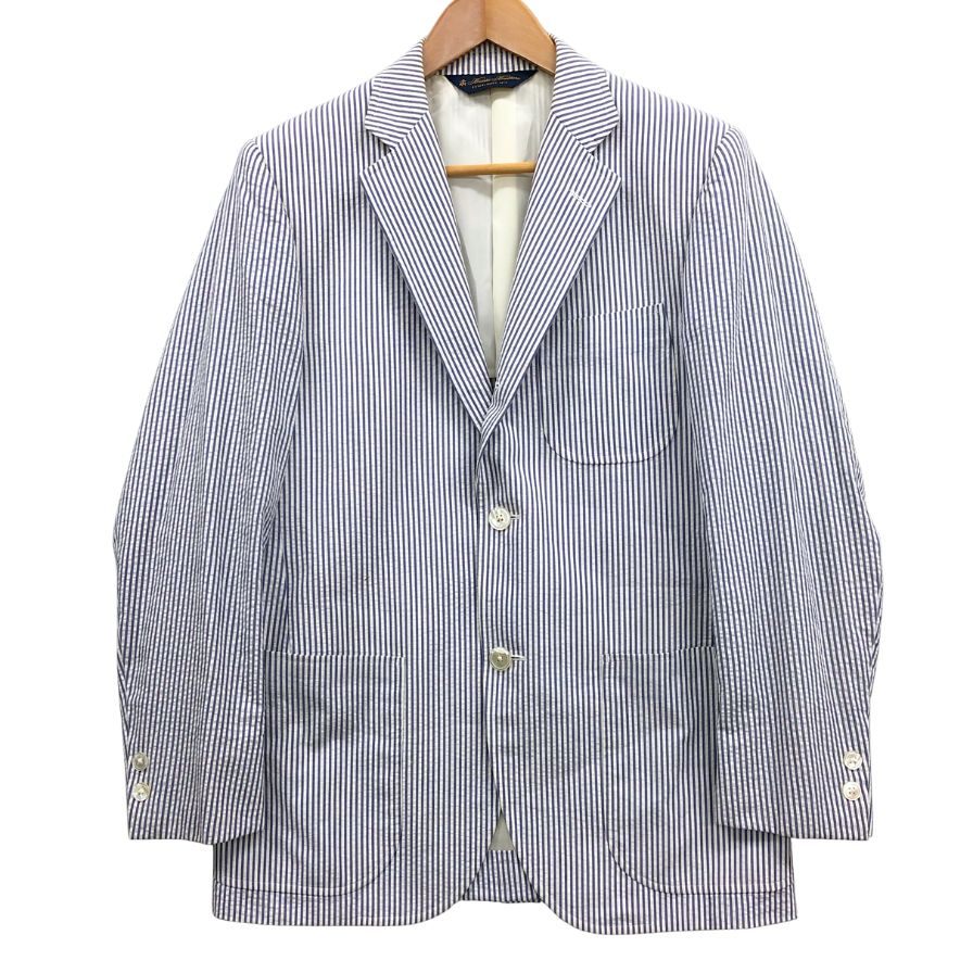 中古◆ブルックスブラザーズ テーラードジャケット コットン ストライプ シアサッカ― オーダー品 メンズ ブルー サイズS相当 BROOKS BROTHERS 【AFB28】
