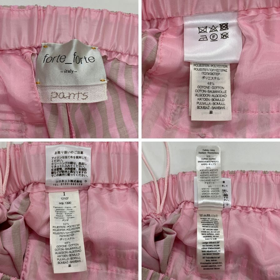 フォルテフォルテ ワイドパンツ ストライプ ウエストゴム イタリア製 レディース サイズ フリー ピンク系 forte_forte 【AFB44】