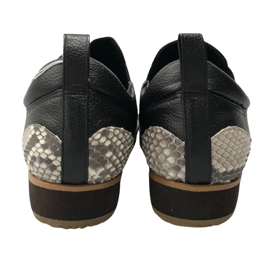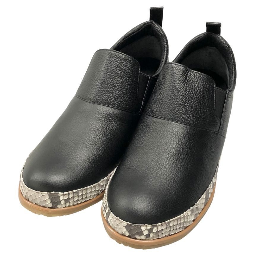 新宿屋 レザースニーカー レザー×パイソン 0230-545 ブラック 22.5cm レディース shinjukuya 約22.5cm【7-6】
