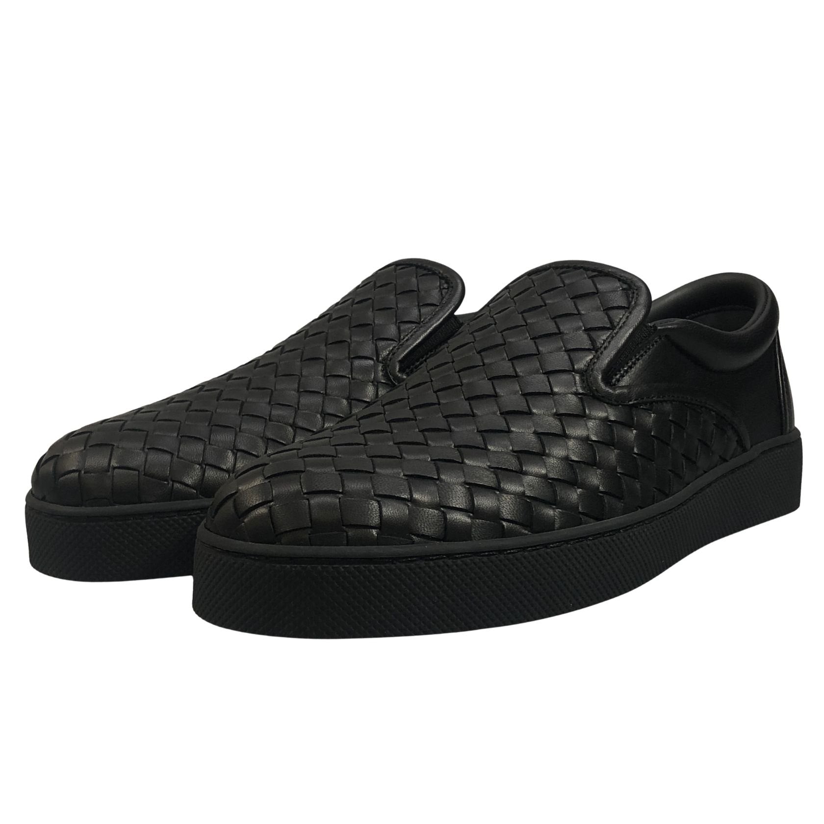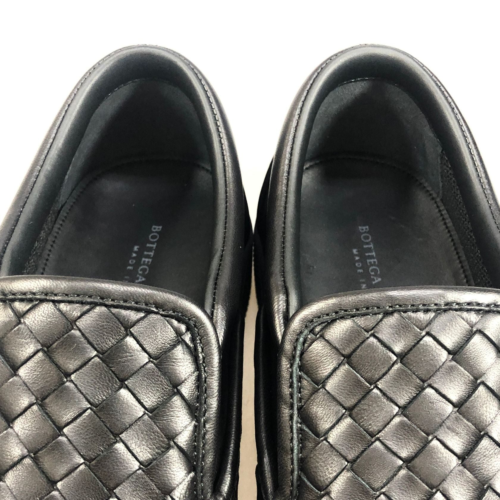 ボッテガ スリッポン イントレチャート レザースニーカー メンズ ブラック サイズ39 BOTTEGA VENETA 約24.5cm【AFD9-2】