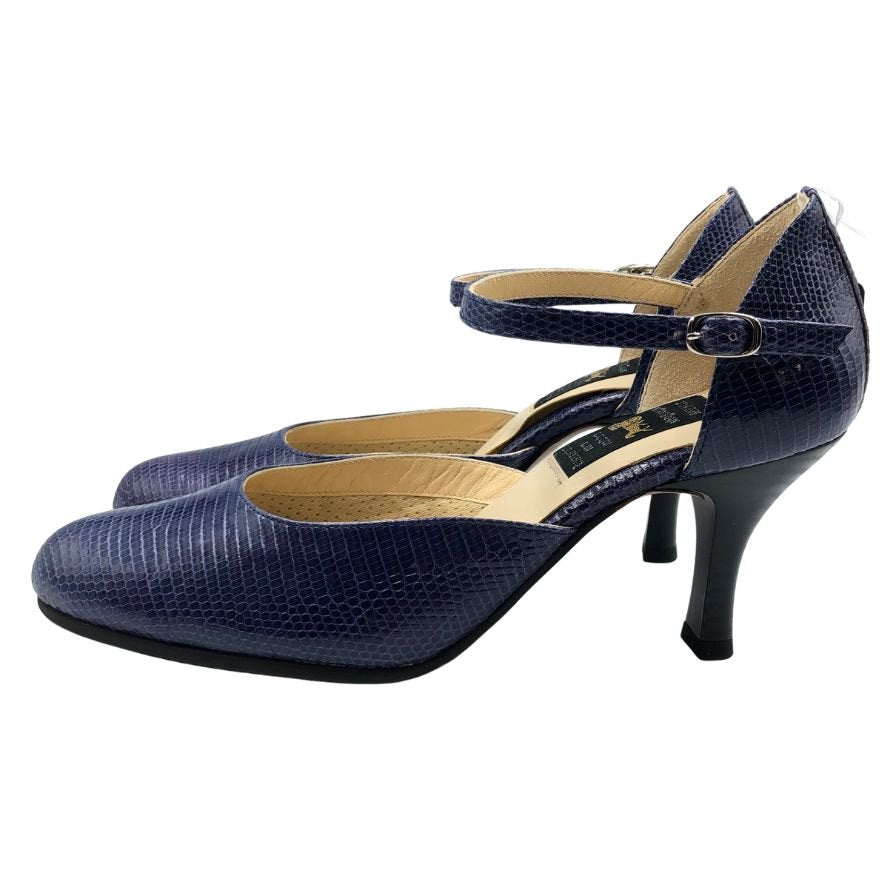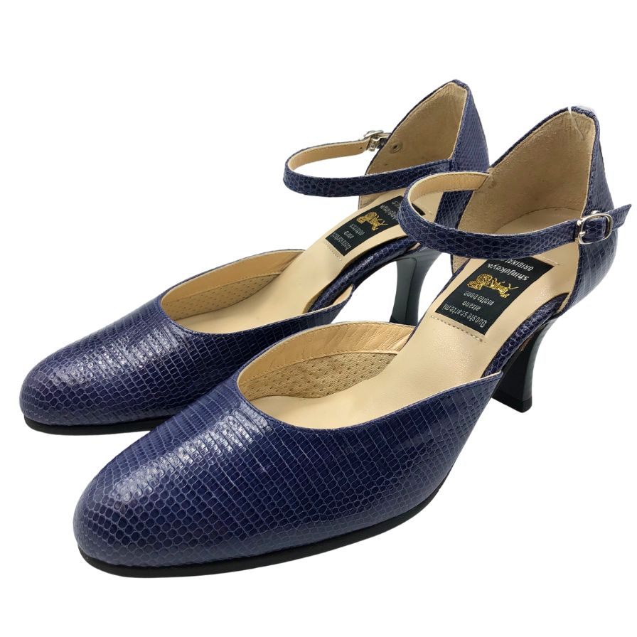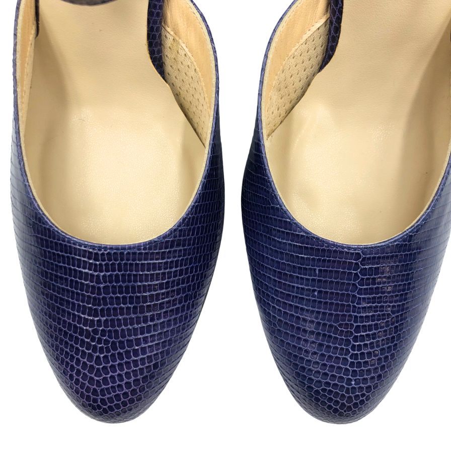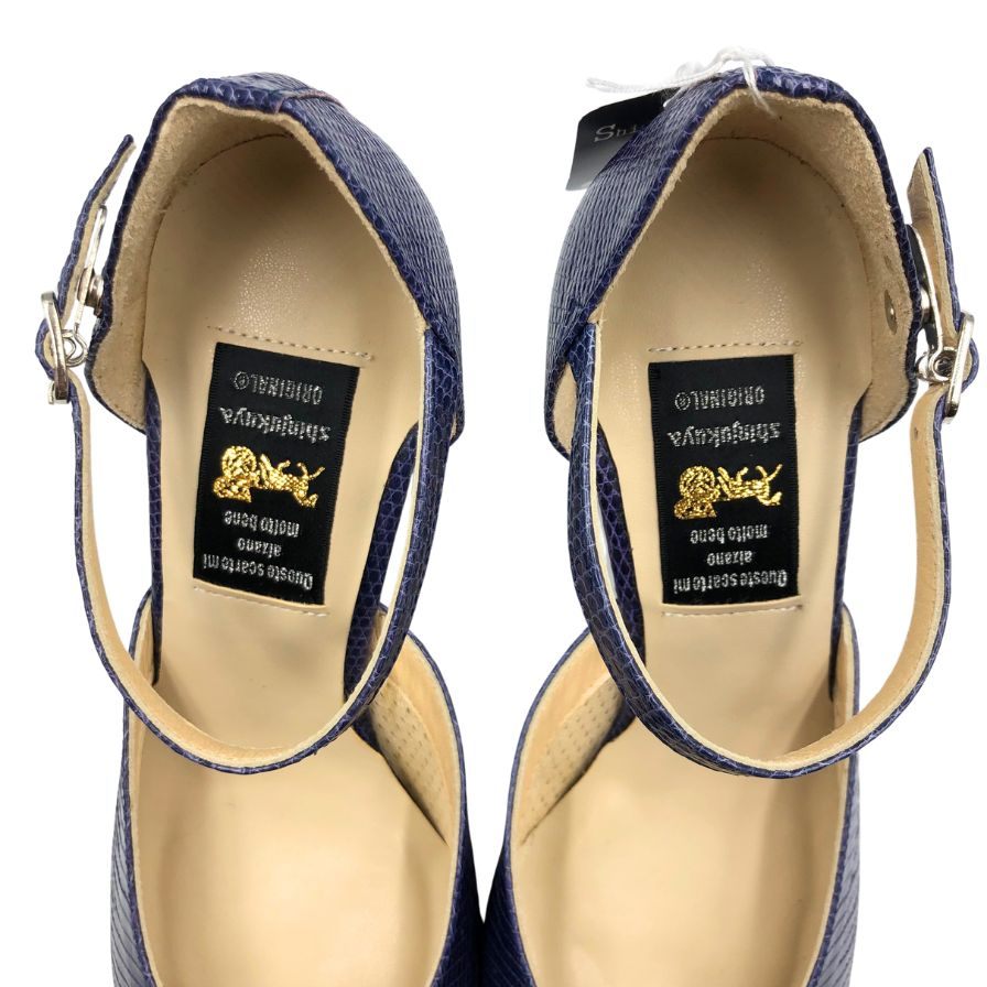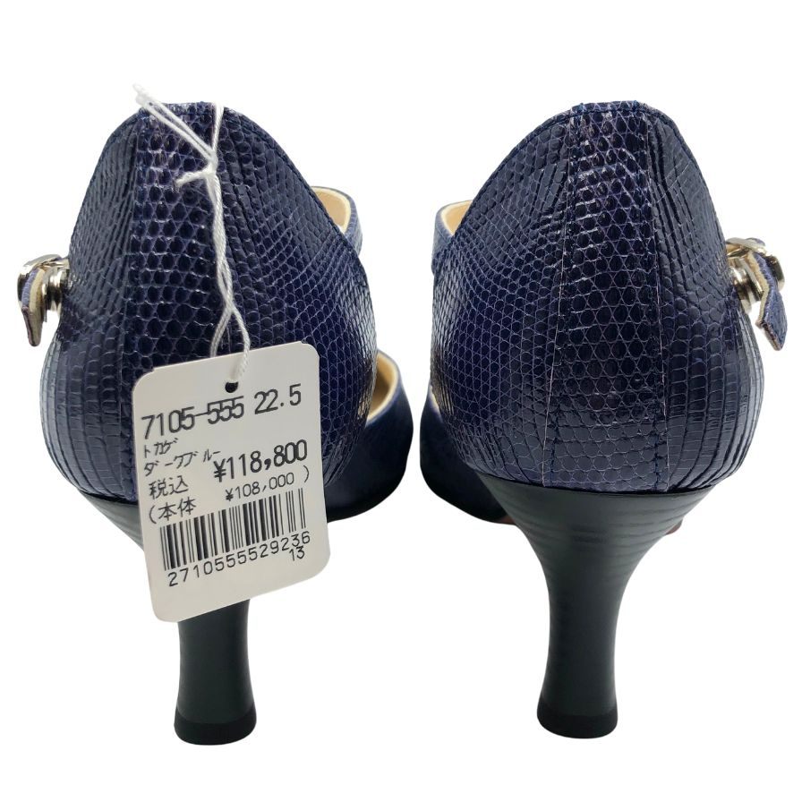 新宿屋 レザーパンプス サンダル リザード 7105-555 ブルー 22.5cm レディース shinjukuya 約22.5cm【7-5】