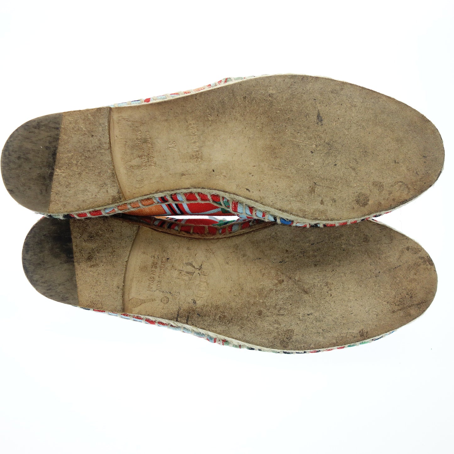 中古◆エルメス フラットシューズ エスパドリーユ 総柄 レザーベルト レディース 37 マルチ HERMES【AFC12】