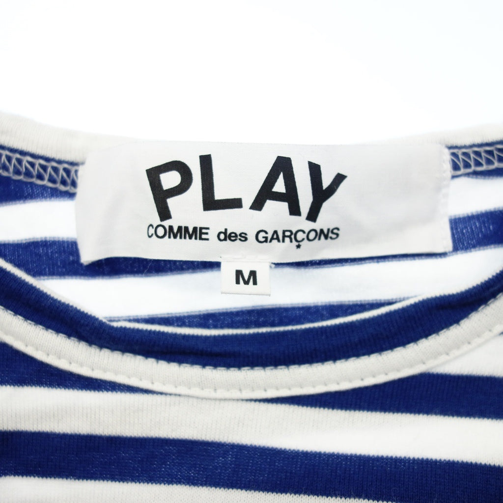 美品◆プレイ コムデギャルソン 長袖 カットソー ハートワッペン ボーダー メンズ ブルー サイズL PLAY COMME des GARCONS【AFB7】