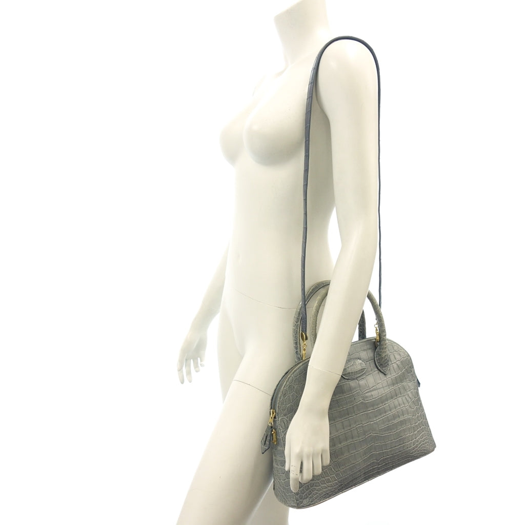 中古◆ノーブランド 純正クロコダイル ハンドバッグ ショルダーバッグ 青系【AFE11】