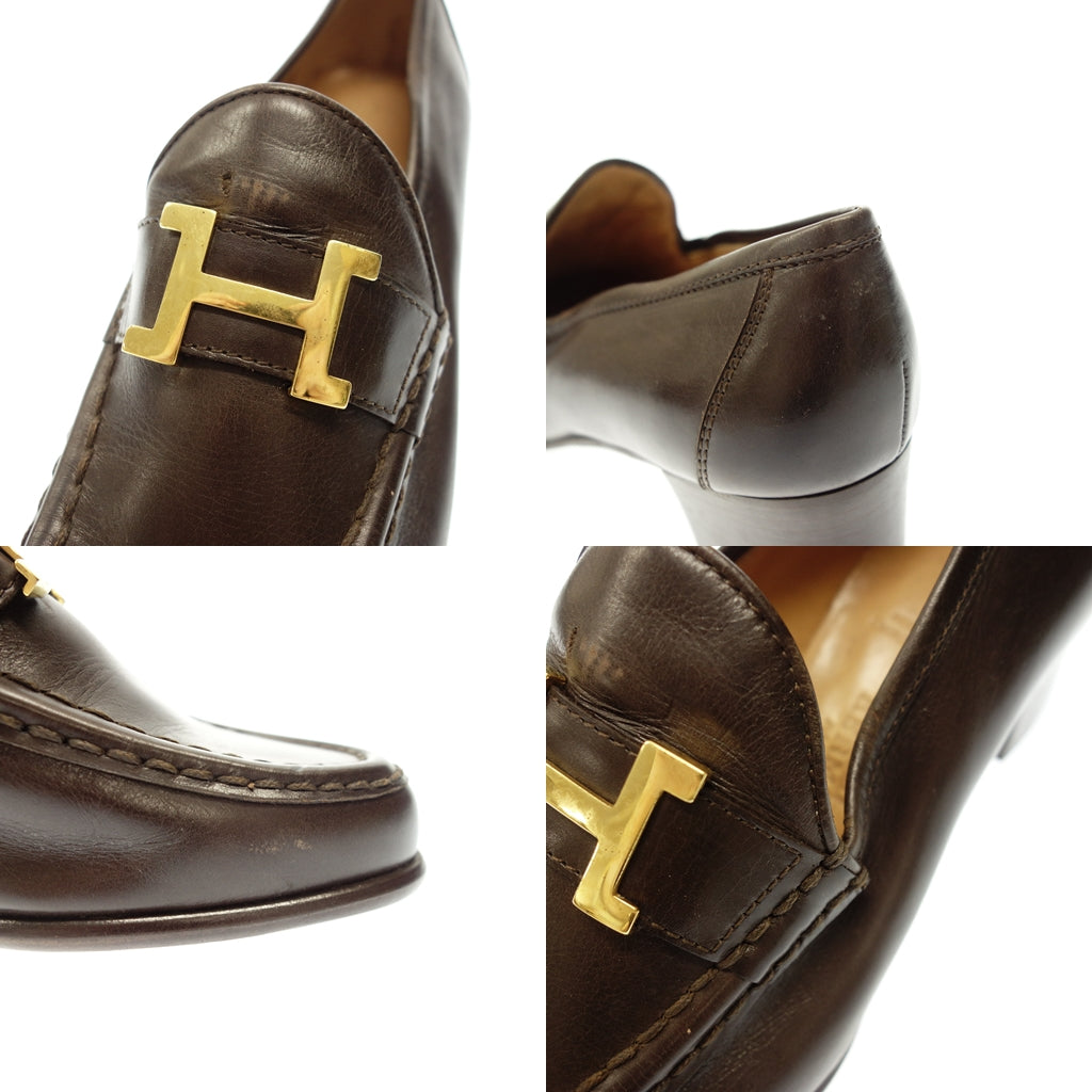 中古◆エルメス レザーローファー Hロゴ ブラウン系 レディース 36.5 茶 HERMES【AFC50】