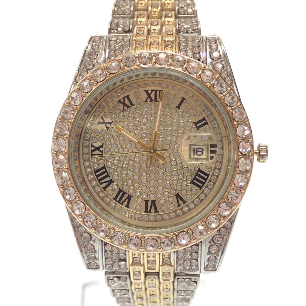 中古◆アイスアウト フルジルコニア 腕時計 シルバー×ゴールド系 Iced-Out【AFI15】