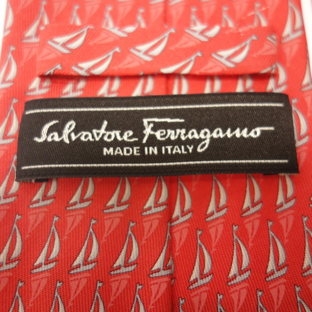 極美品◆サルバトーレ フェラガモ ネクタイ ヨット柄 赤 Salvatore Ferragamo【AFI20】