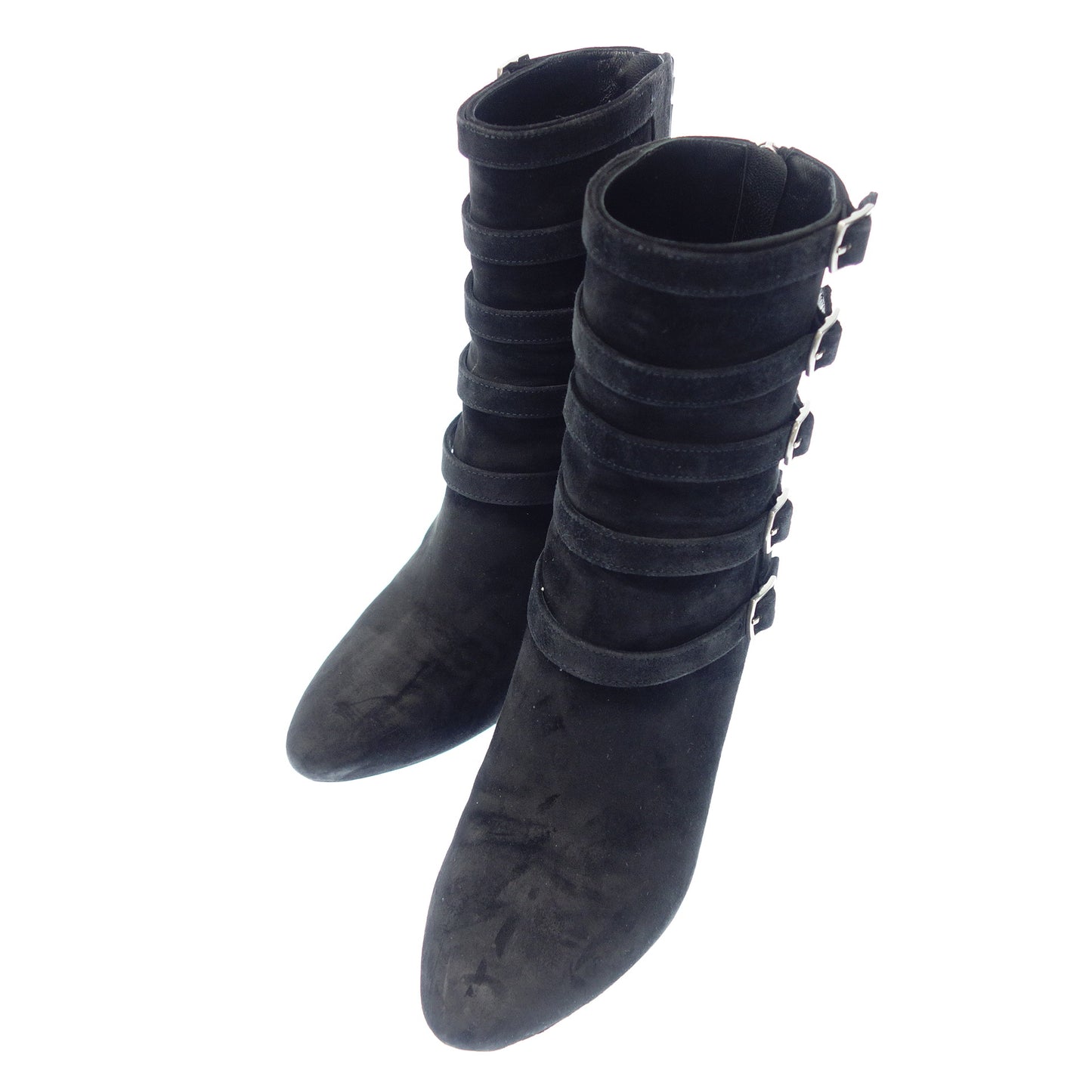 中古◆サンローラン パリ スエード ブーツ サイドストラップ レディース サイズ37 ブラック系 Saint Laurent PARIS【AFC35】
