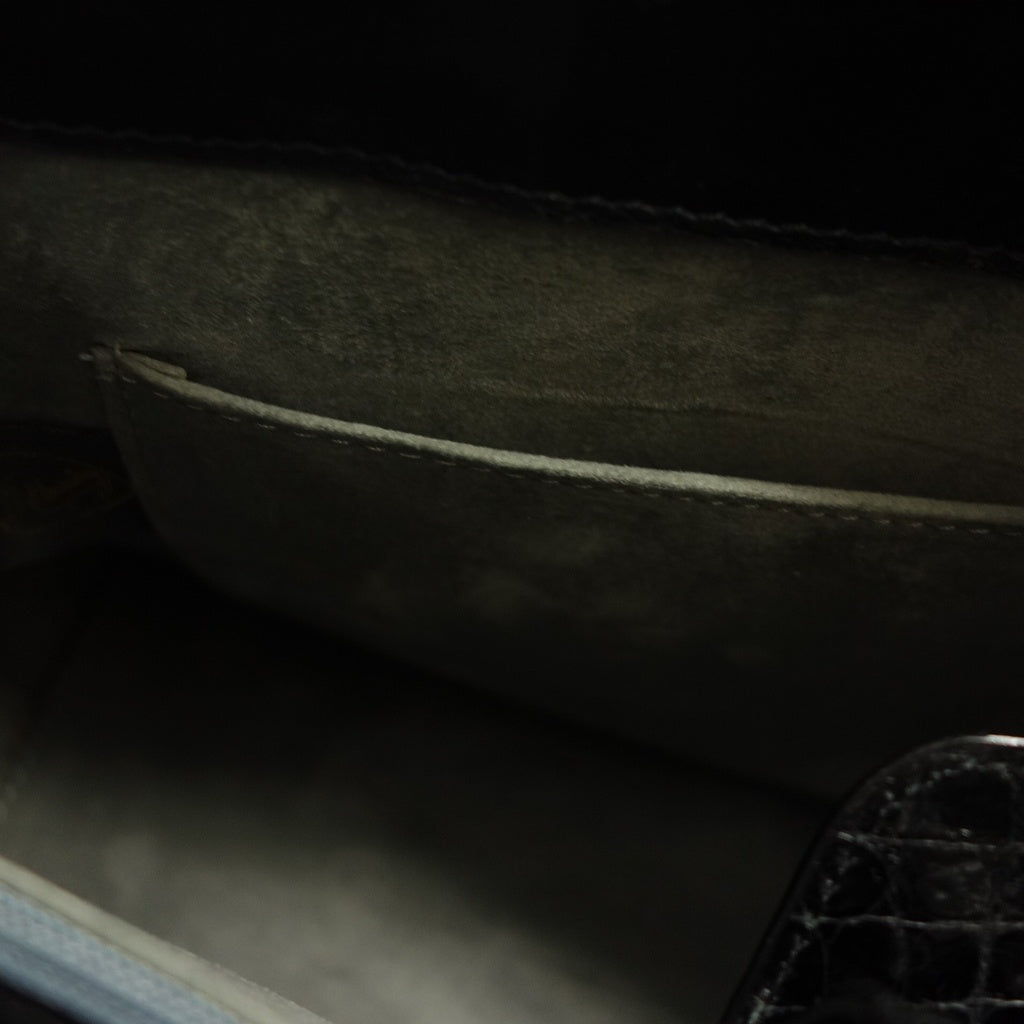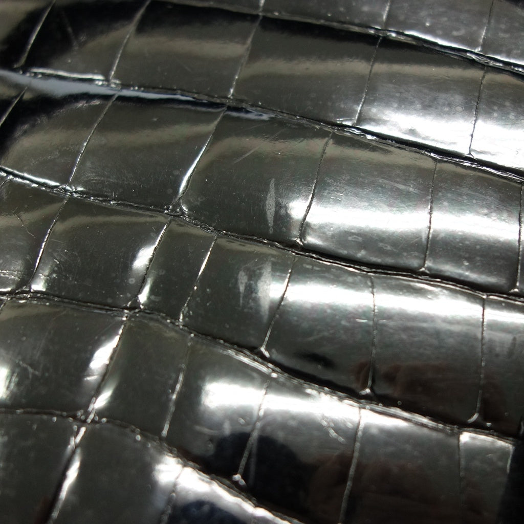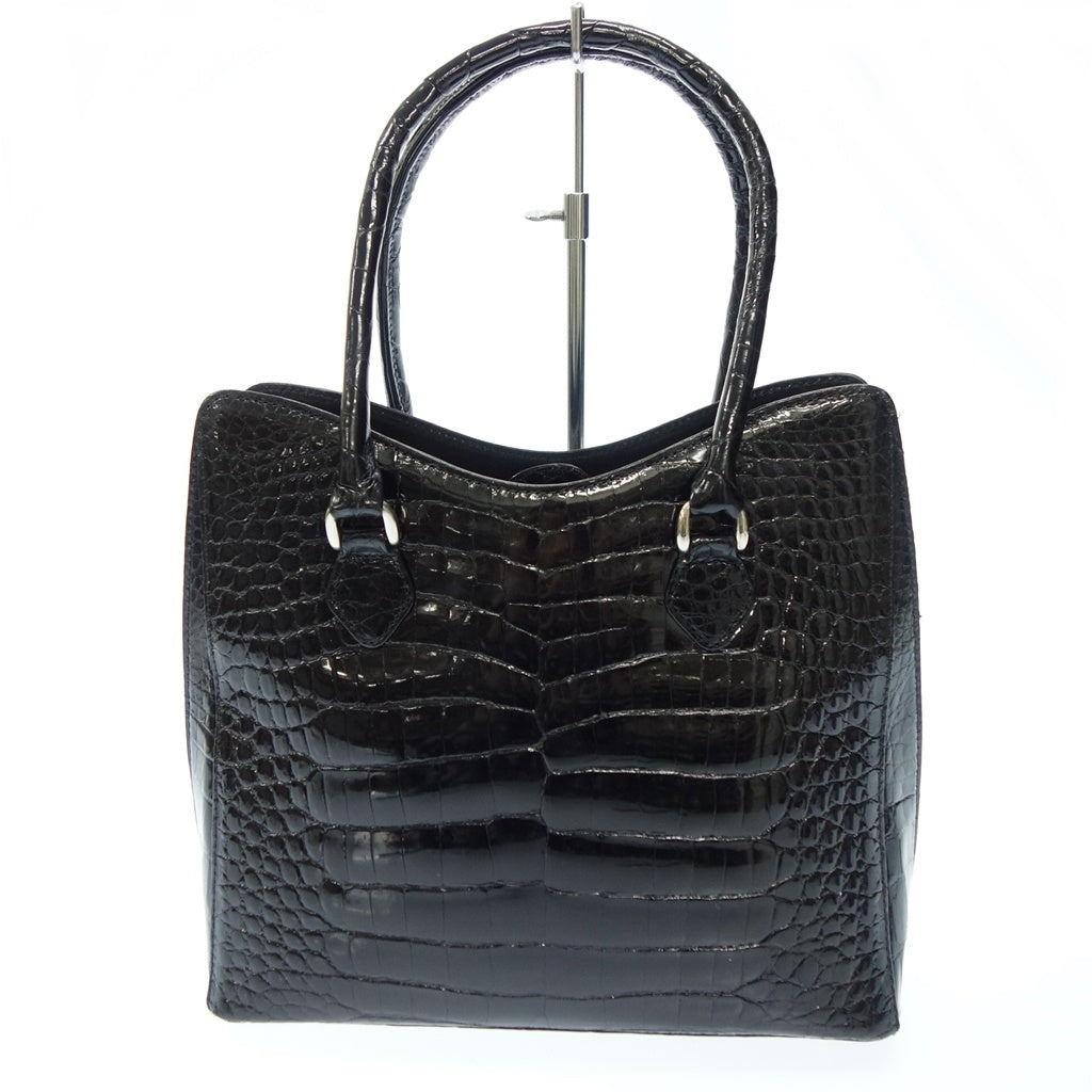 美品◆サンポー JRA認定 ハンドバッグ クロコダイル シャイニー ブラック sanpo【AFE11】